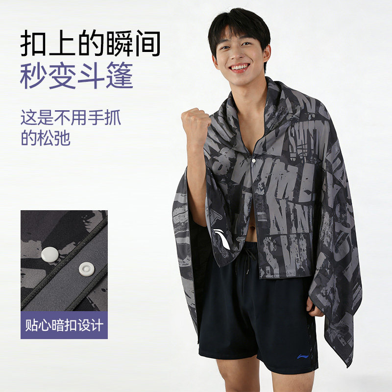 李宁游泳速干浴巾浴袍成人男女健身房运动专用吸水毛巾便携沙滩巾