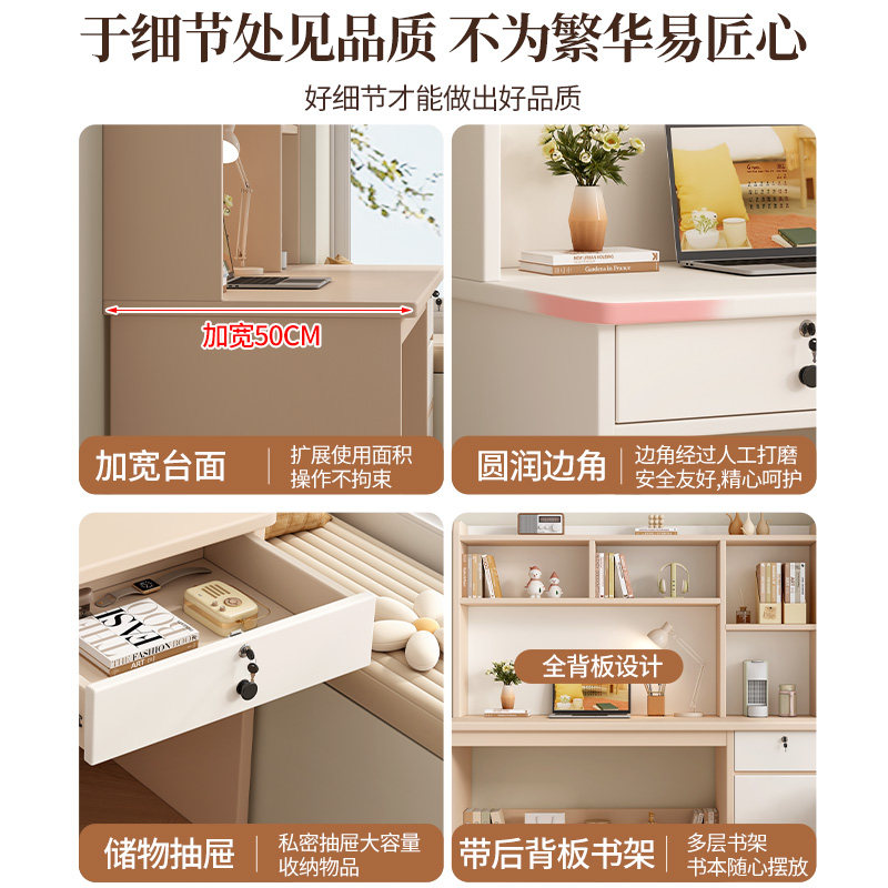 实木书桌书架一体桌家用卧室