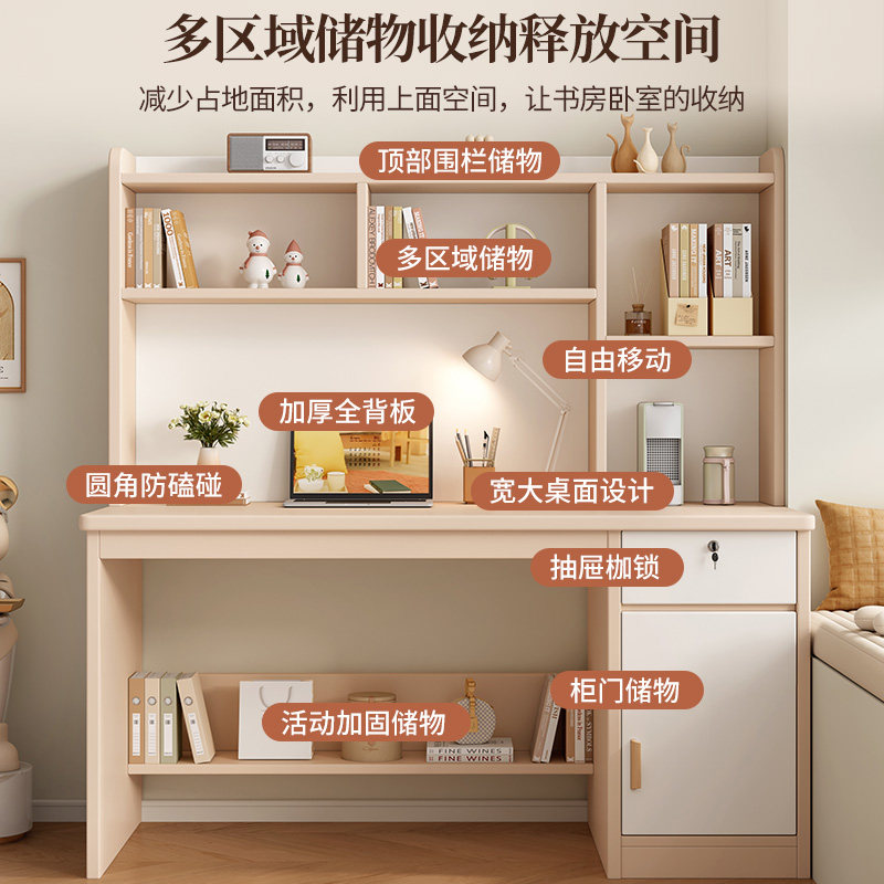 实木书桌书架一体桌家用卧室电脑桌台式办公桌学生学习桌写字桌子