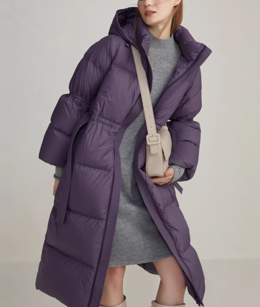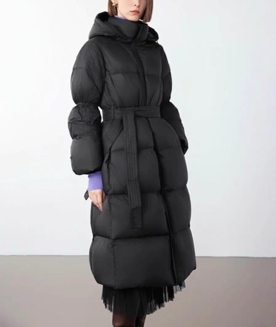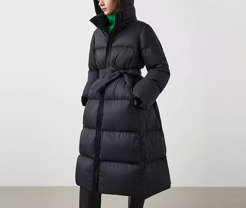 霍尔多巴吉白鸭绒收腰羽绒服新款修身中长款外套大衣朗姿同批同款