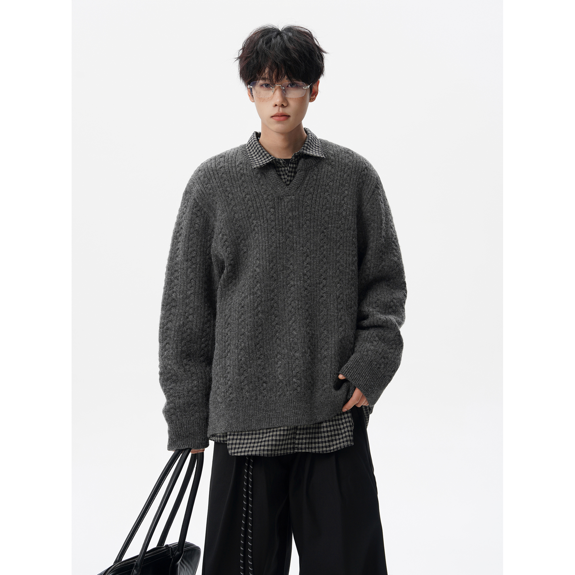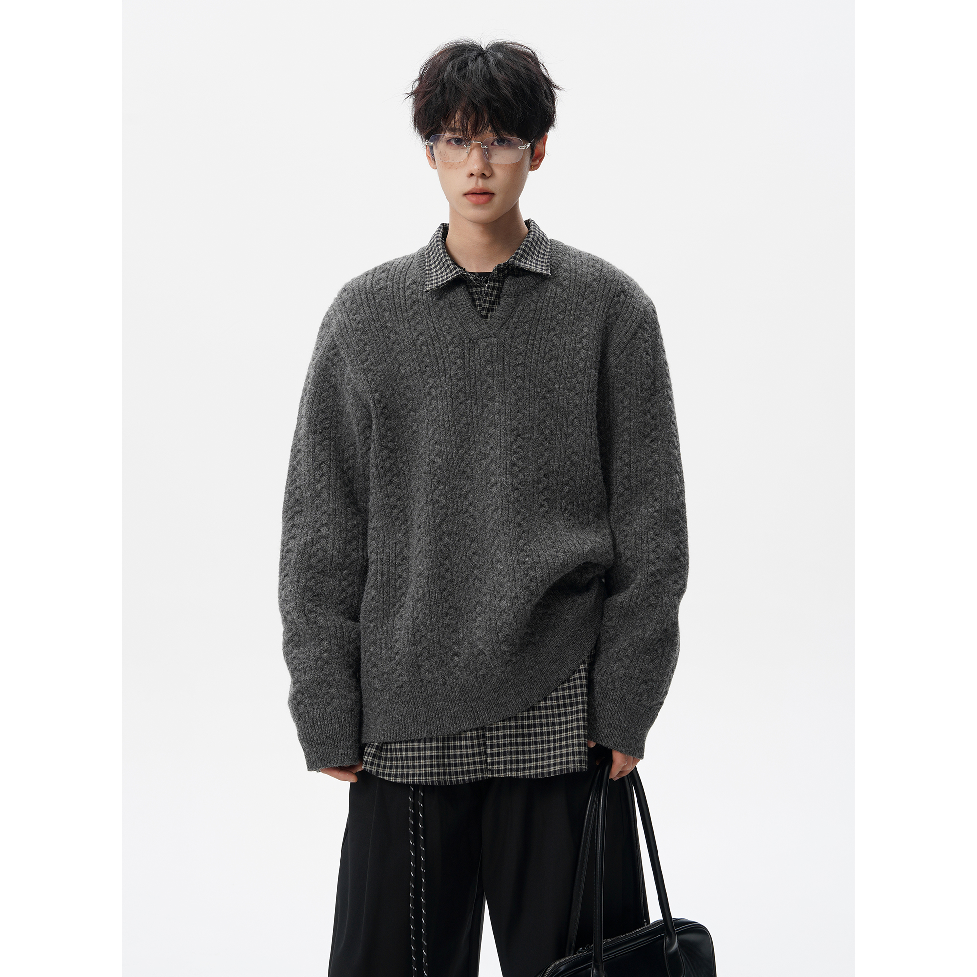 美式重磅亨利领麻花毛衣男秋冬季潮牌宽松痞帅百搭保暖情侣针织衫