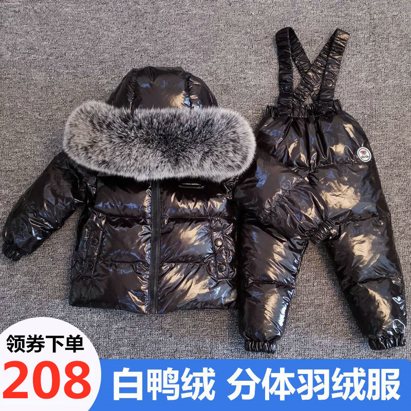 冬季新款儿童羽绒服套装宝宝婴儿背带裤套装男童女童貉子毛滑雪服