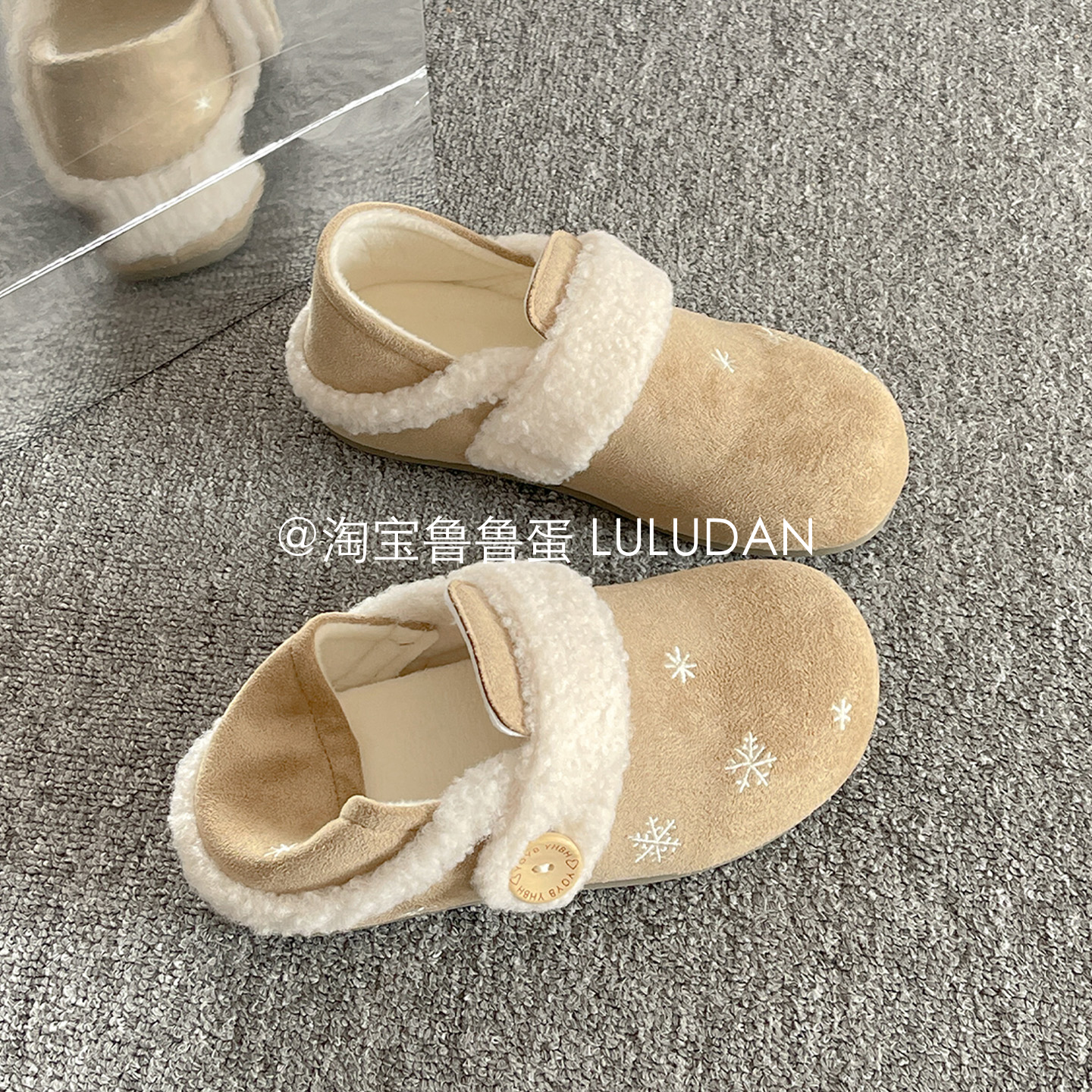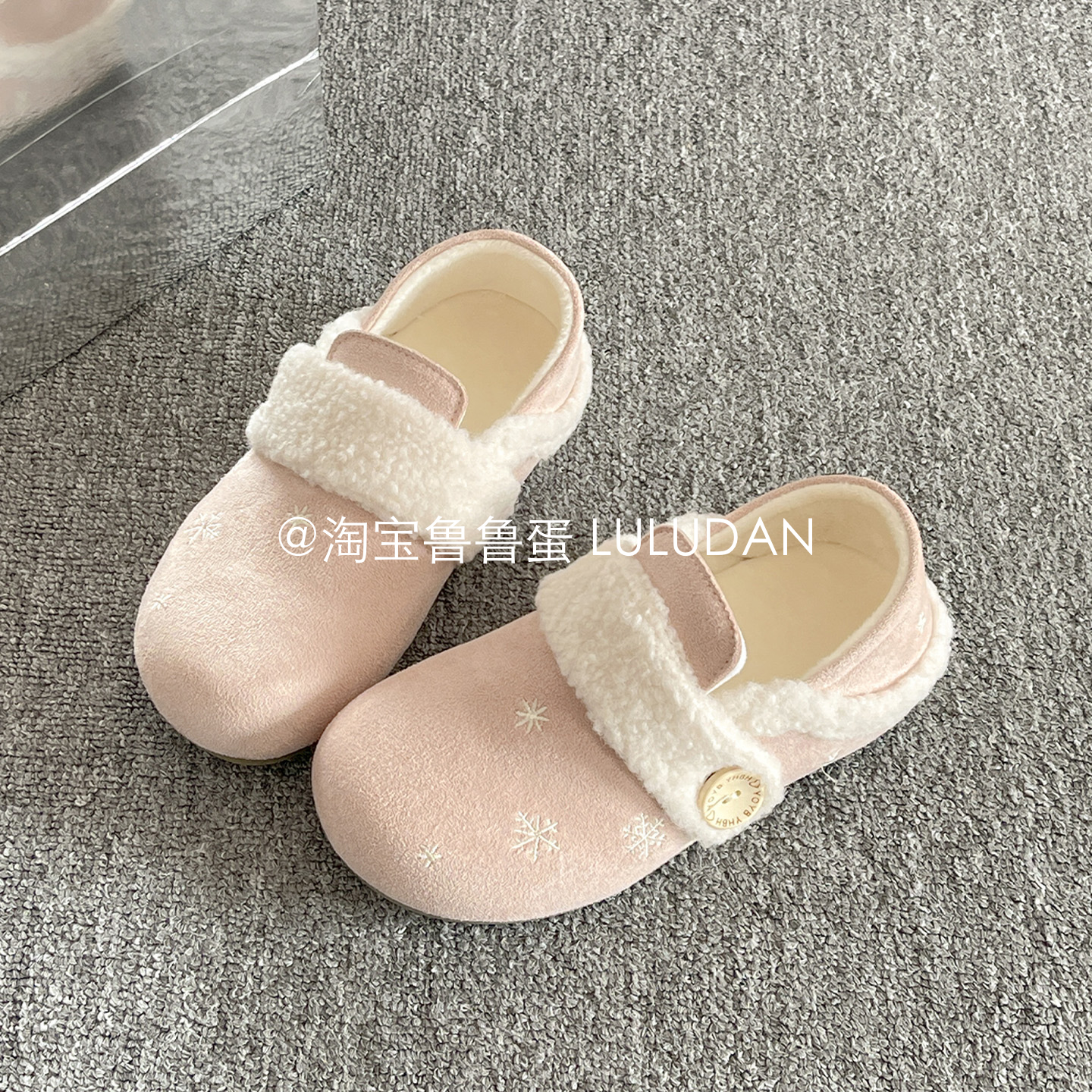 鲁鲁蛋 一脚蹬加绒勃肯鞋女2025新款爆款冬季魔术贴毛毛二棉鞋子