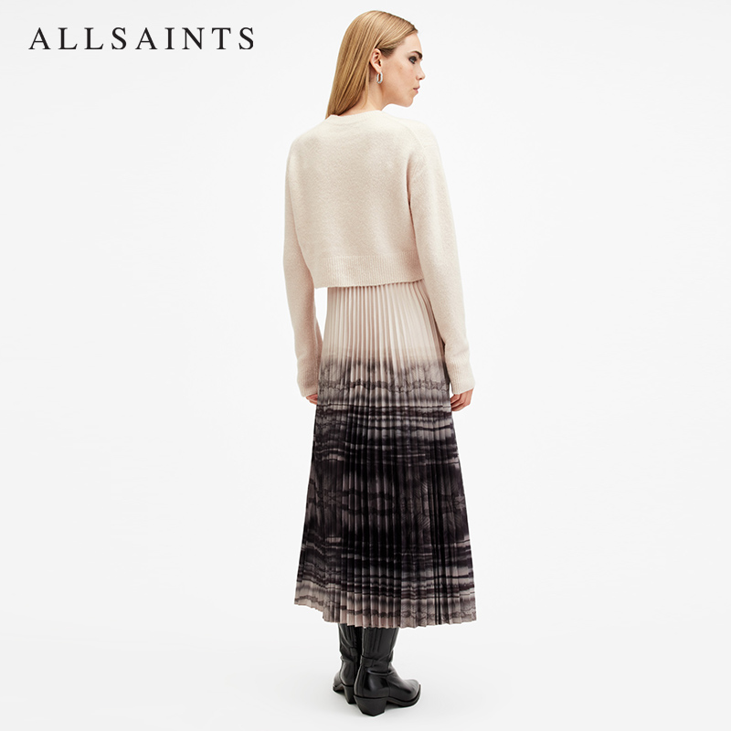 ALLSAINTS女士渐变扎染连衣裙两件套裙装套头毛衣百褶裙秋W207DB