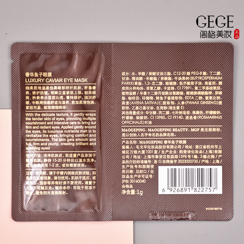 10片试用装毛戈平奢华鱼子酱眼膜1g小样补水保湿紧致眼纹淡黑眼圈
