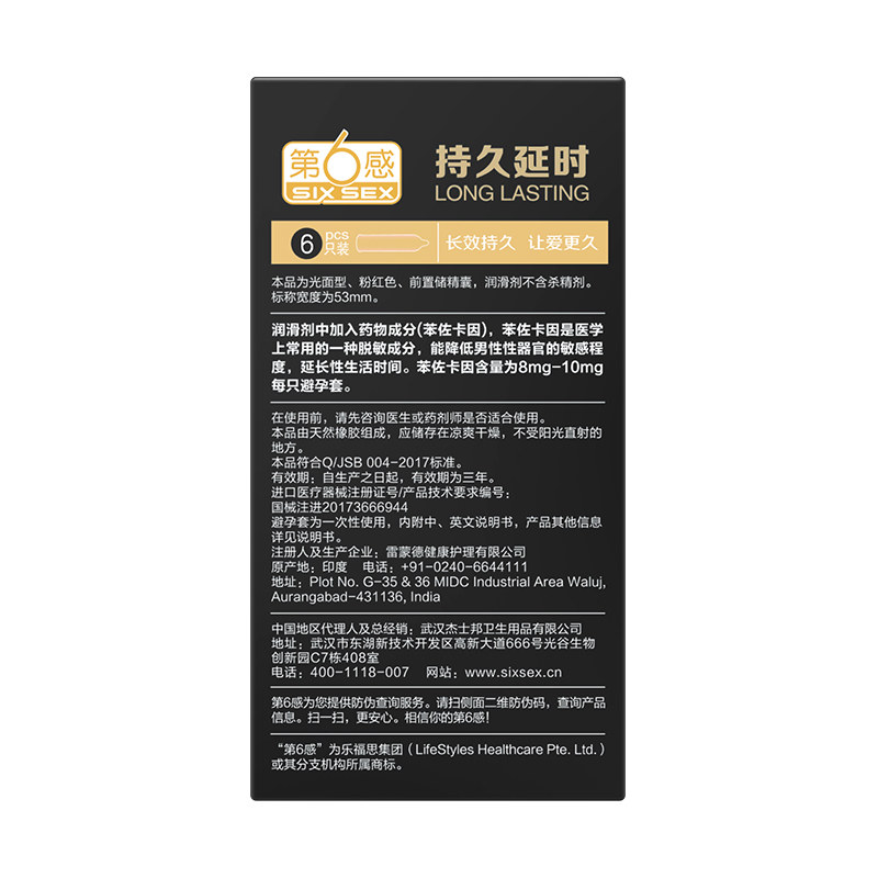 第六感持久装延时套男用情趣颗粒刺激中号液态苯佐卡因安全套正品