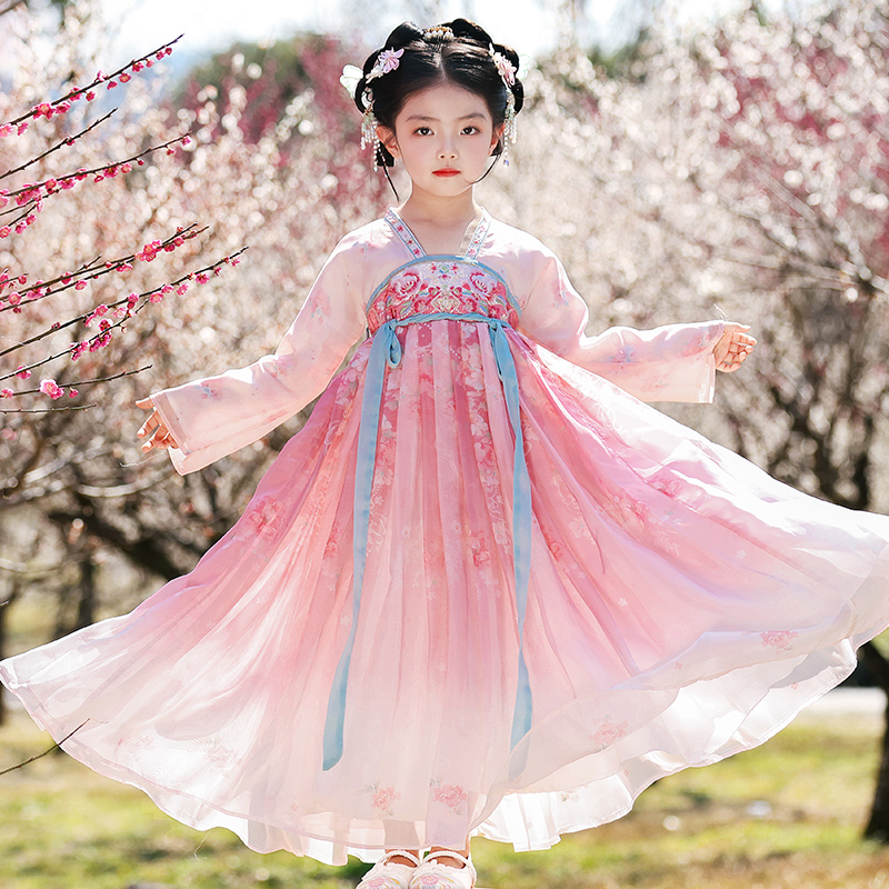 女童汉服春秋古装连衣裙2025新款中国风唐装襦裙儿童古风超仙秋装