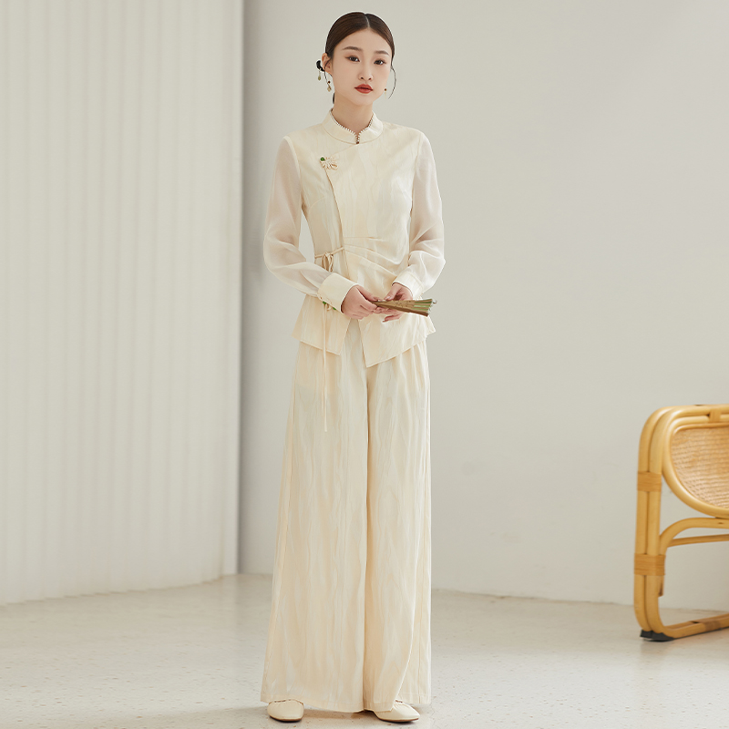 新中式盘扣女装改良新款旗袍国风上衣汉服套装女高端禅意茶服唐装