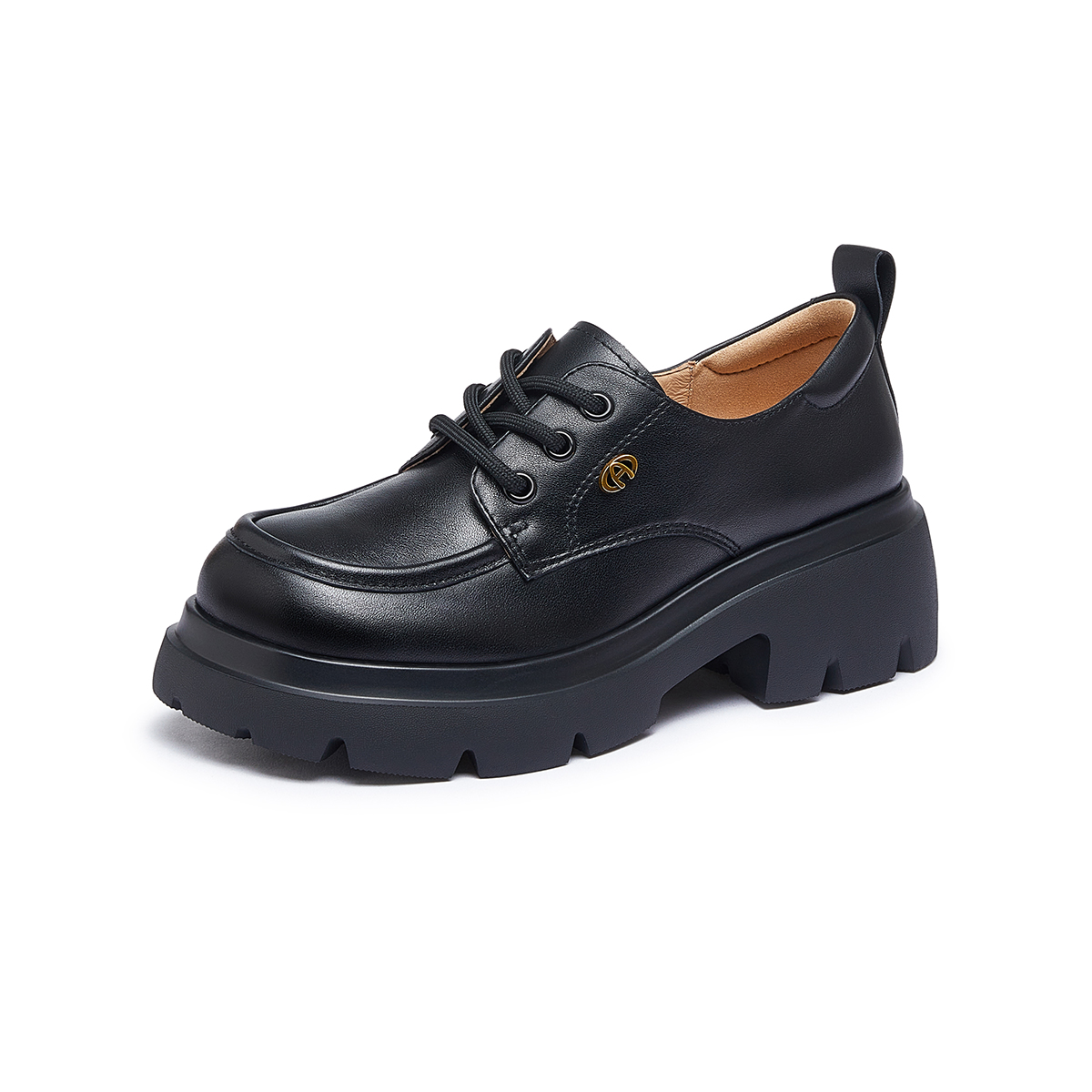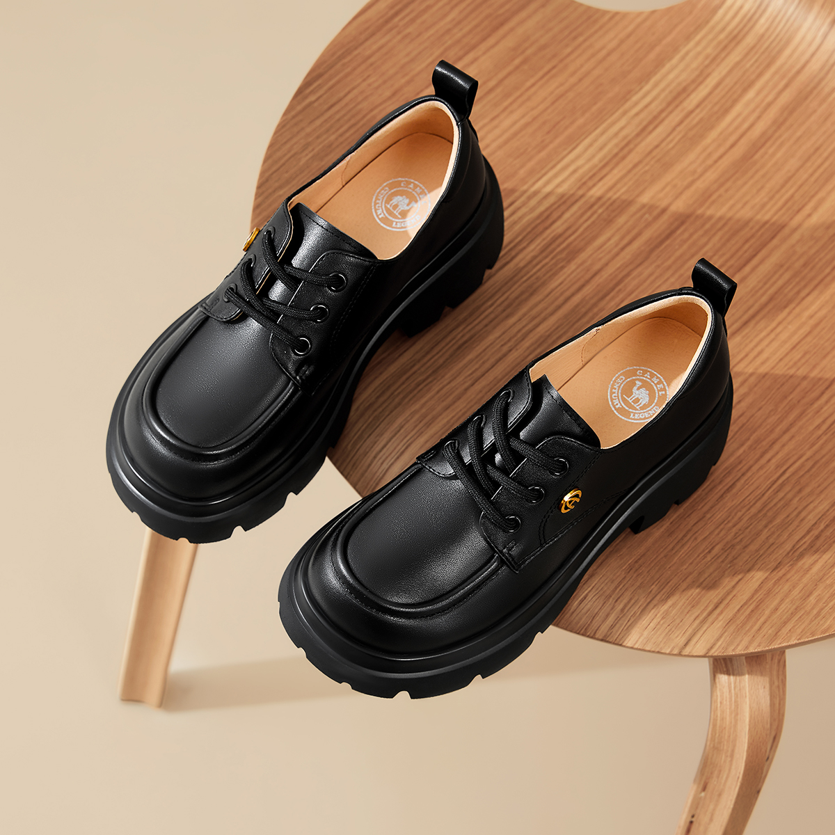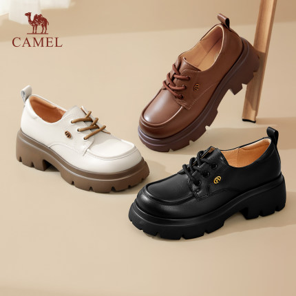 骆驼女鞋2025秋季新款真皮英伦风单鞋女厚底通勤jk小皮鞋女乐福鞋