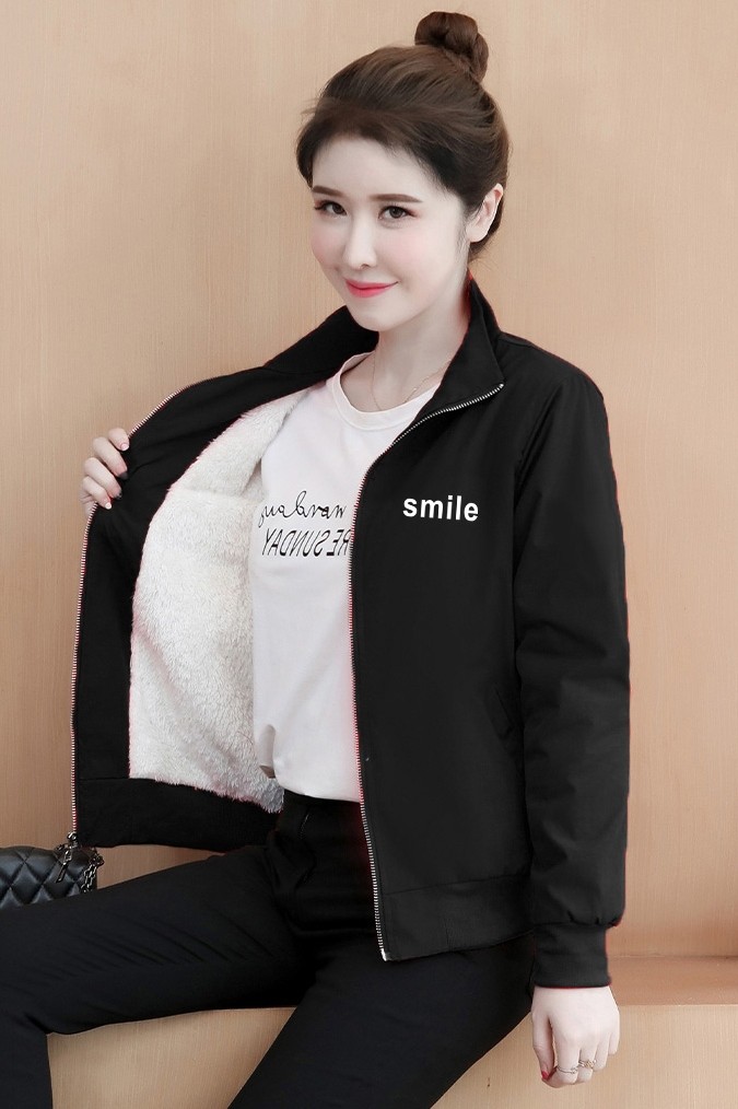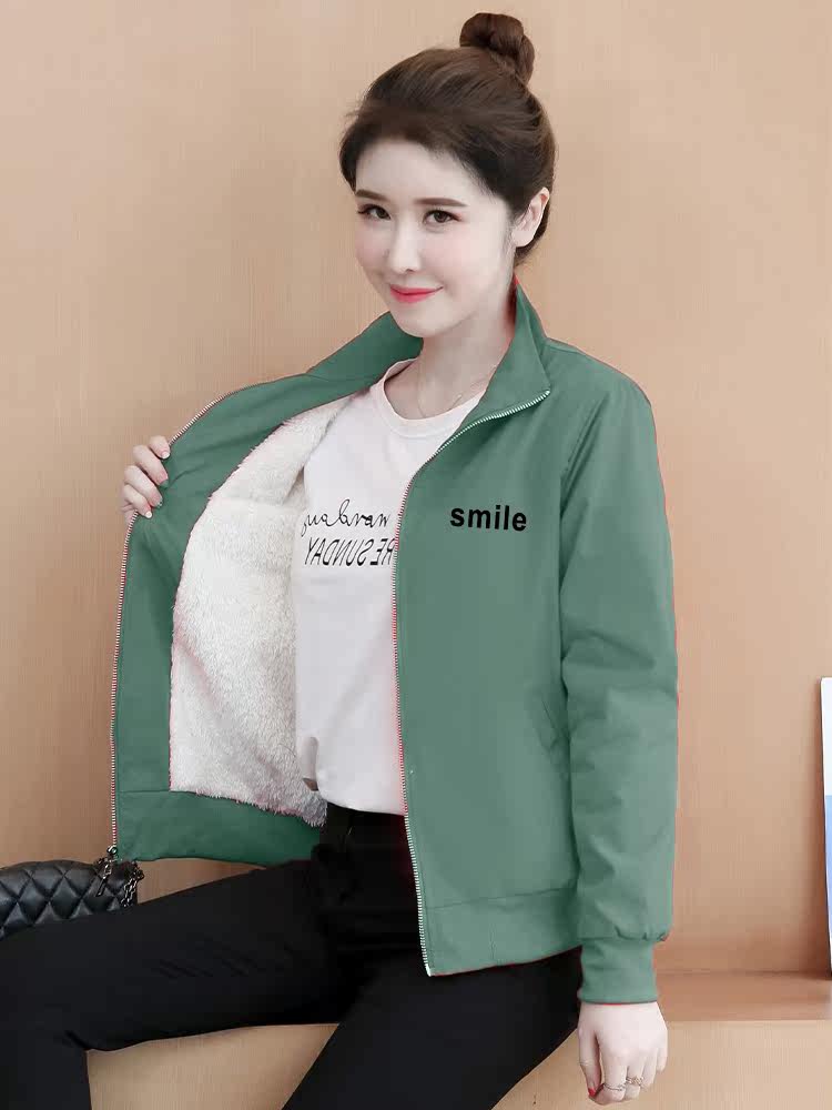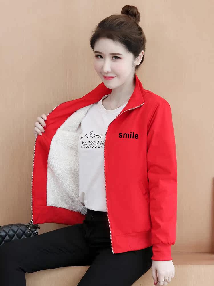 加绒短外套2023春秋新款韩版立领休闲宽松夹克风衣ins