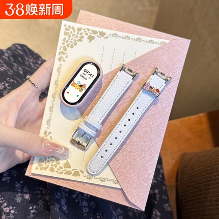 Sweet适用小米手环10表带9/8皮质荔枝纹陶瓷版/NFC版替换7/6/5/4/3腕带创意款xiaomi八九十代智能运动配件