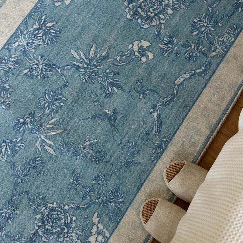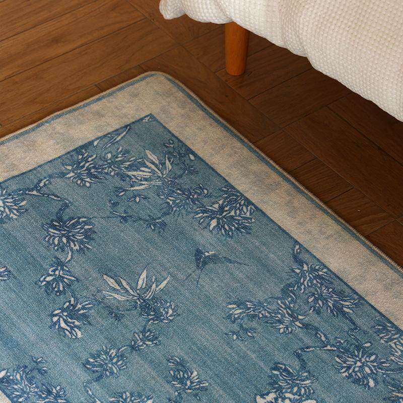 新中式法式地毯卧室床边毯房间吸水防滑女孩蓝色轻奢高级覆古床前