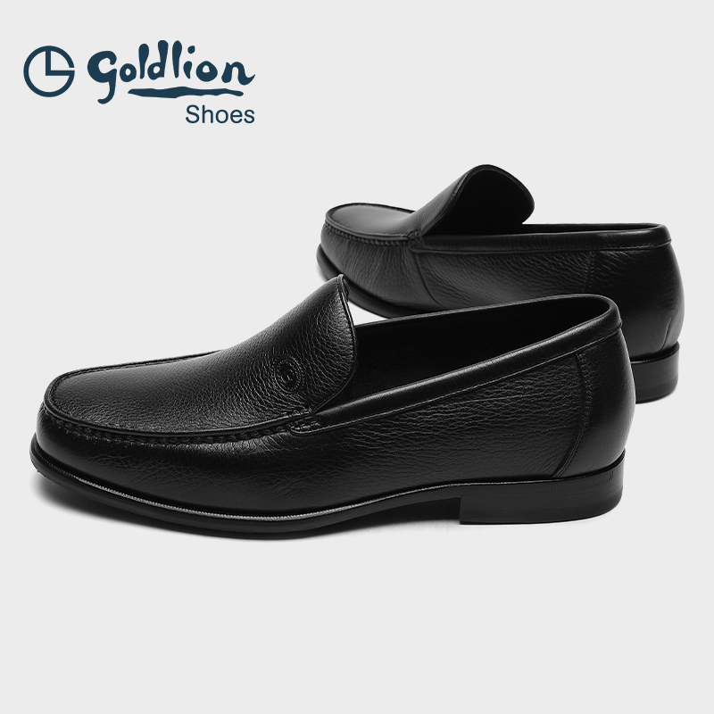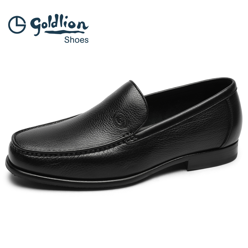Goldlion男鞋2025新款商务休闲皮鞋男士真皮一脚蹬软底套脚乐福鞋