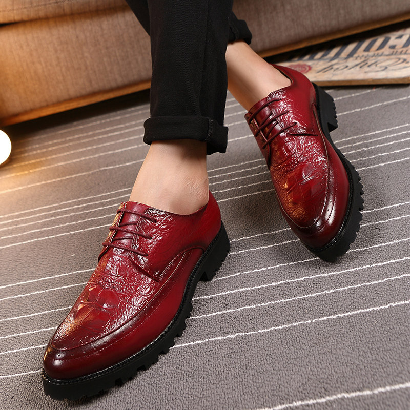 春秋韩版发型师皮鞋男英伦内增高休闲鞋布洛克夜场百搭透气潮鞋子