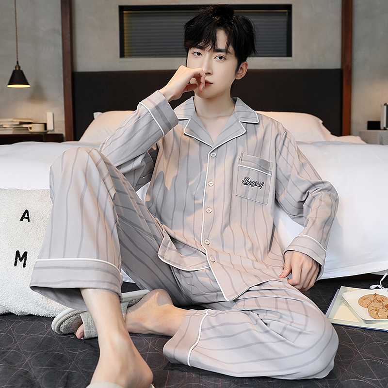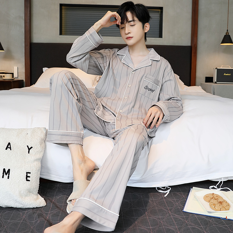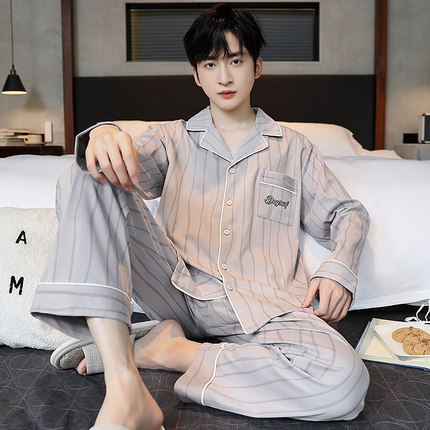 2023新款男士睡衣秋季纯棉长袖长裤春秋款休闲男款大码家居服套装