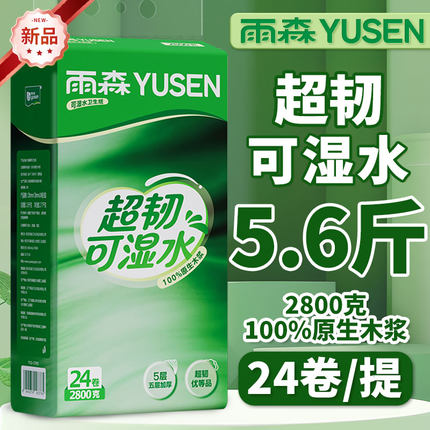 雨森卫生纸超韧可湿水5.6斤卷筒纸家用粗卷实惠手纸厕纸实惠五层