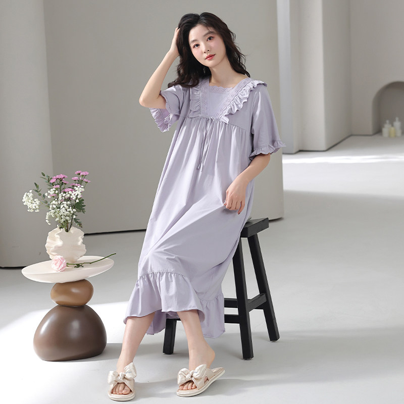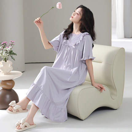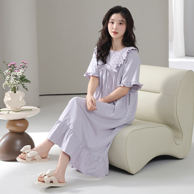 猫人带胸垫睡裙女纯棉夏季短袖睡衣宽松大码甜美孕妇家居服可外穿