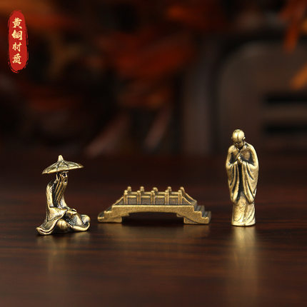 黄铜渔翁姜太公钓渔翁小桥僧人造景微景观铜摆件微型迷你鱼缸装饰