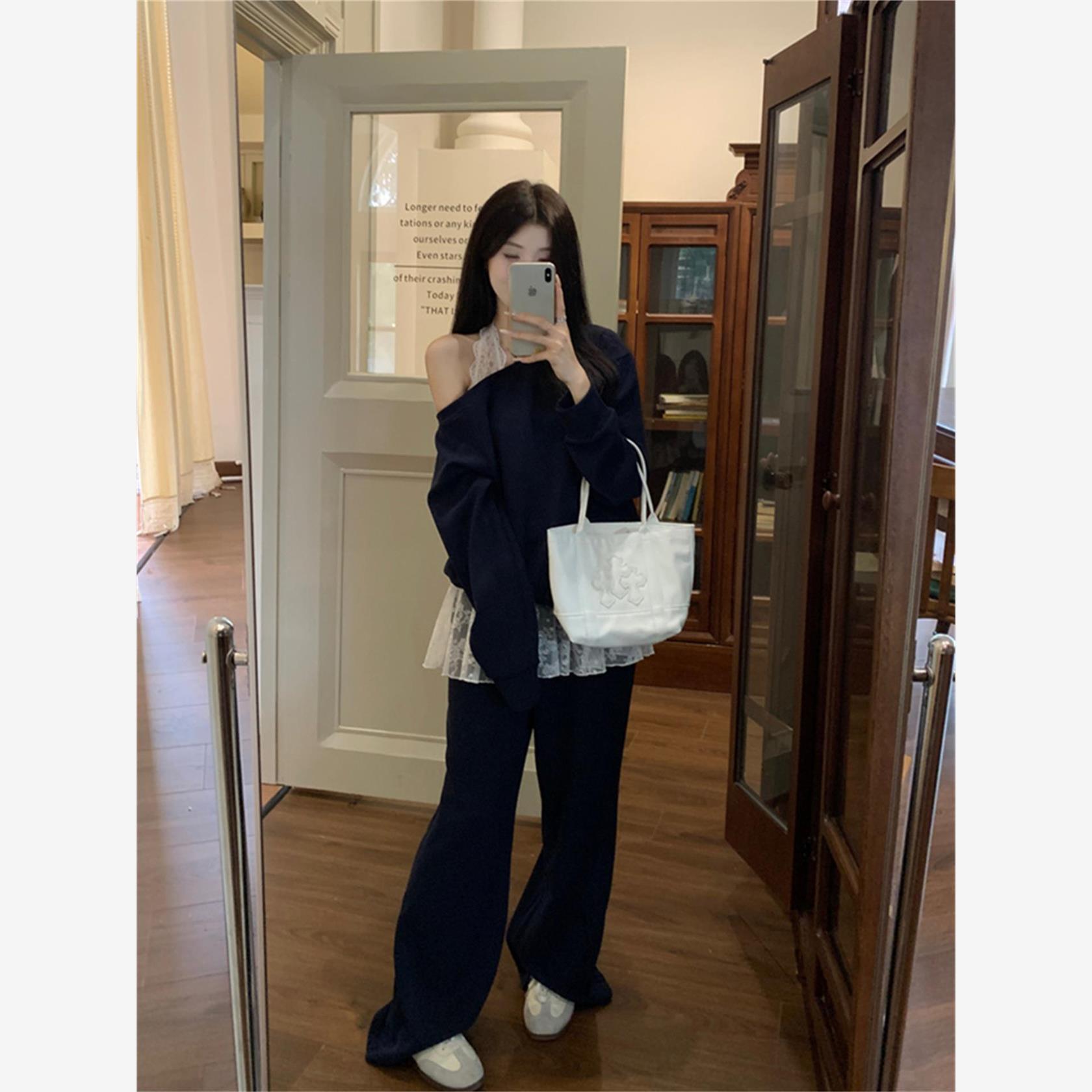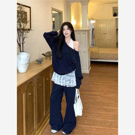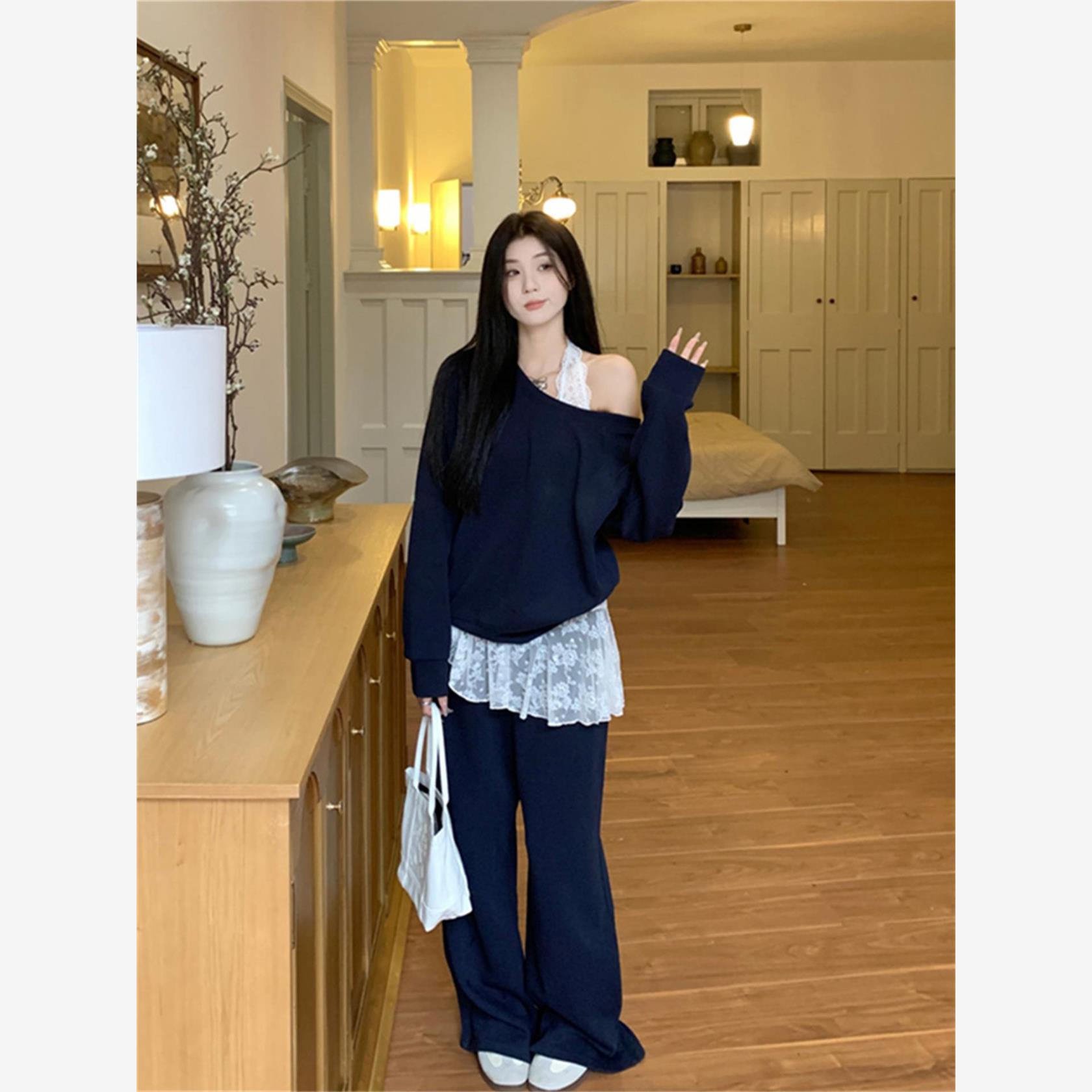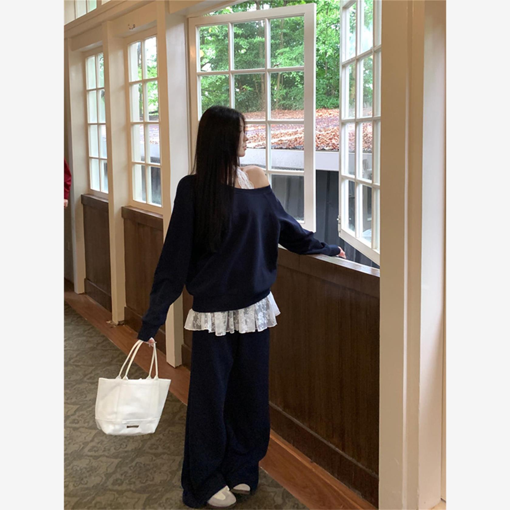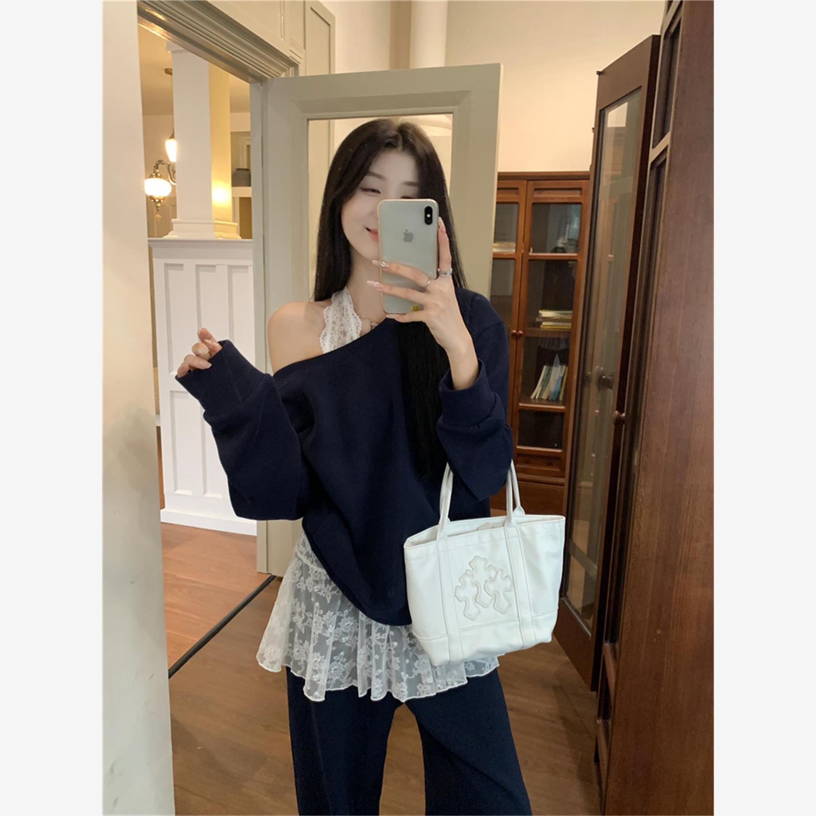 韩系斜肩卫衣套装女春秋季学生宽松韩版时尚减龄休闲运动两件套潮
