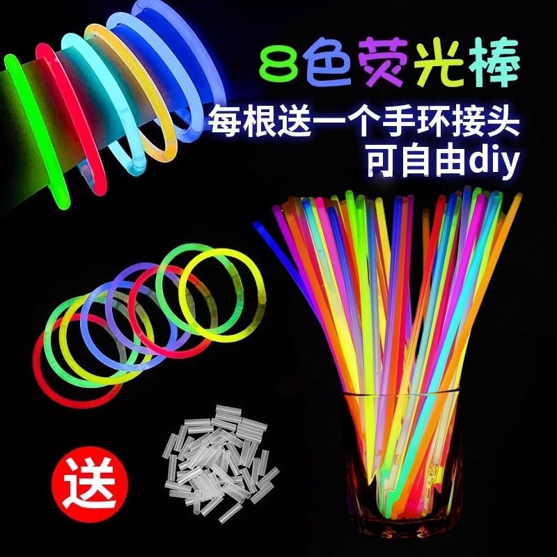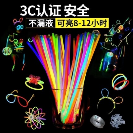 荧光棒粘衣服发光儿童无毒莹光彩色棒晚会炫彩光银光夜光手环