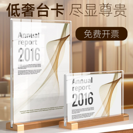 A4亚克力台卡桌牌胡桃木展示牌立牌A5台签桌面展示台牌双面透明价签牌餐桌菜单价目表广告牌价格牌会议牌设计