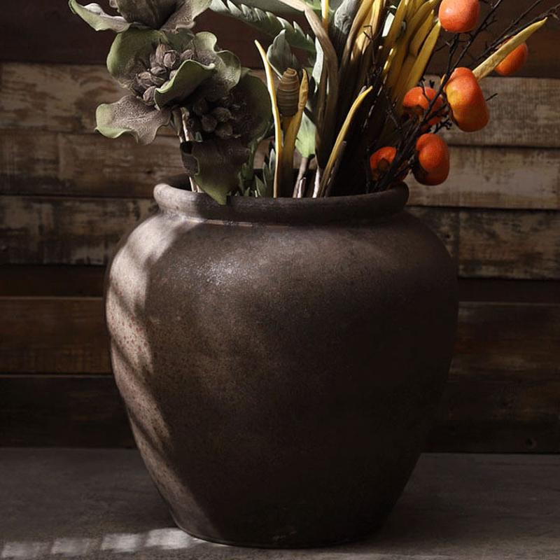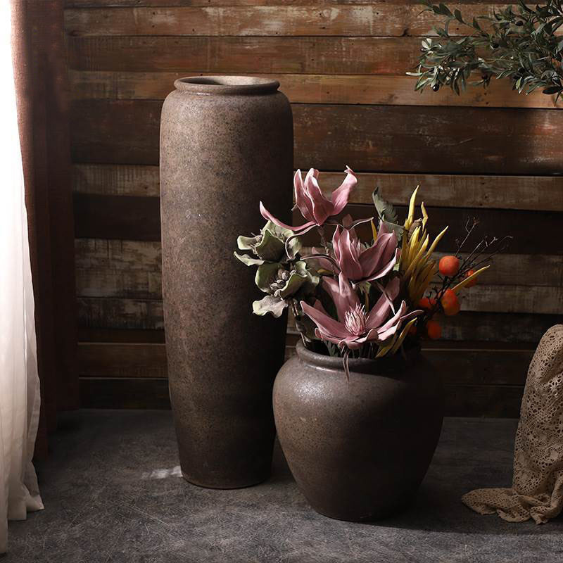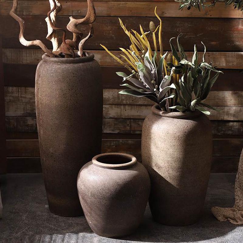 热销景德镇陶瓷大号复古花瓶客厅插花摆件现代简约手工落地陶罐大