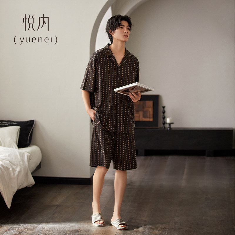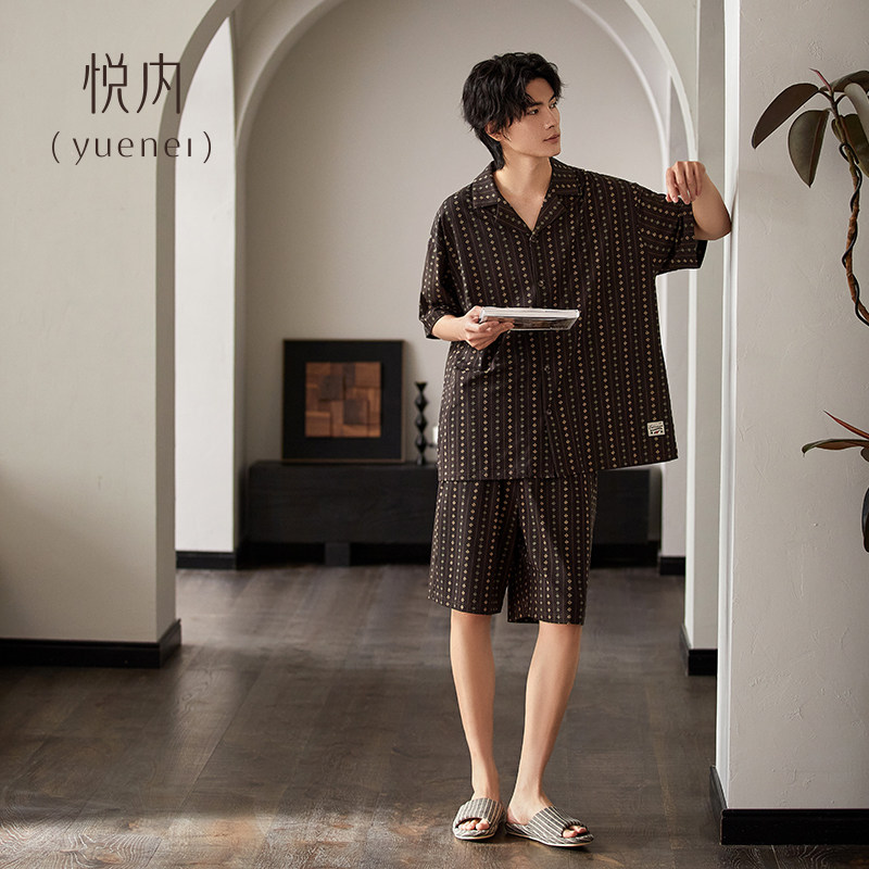 悦内睡衣男士夏季夏款纯棉短袖短裤家居服老钱风加大码休闲可外穿