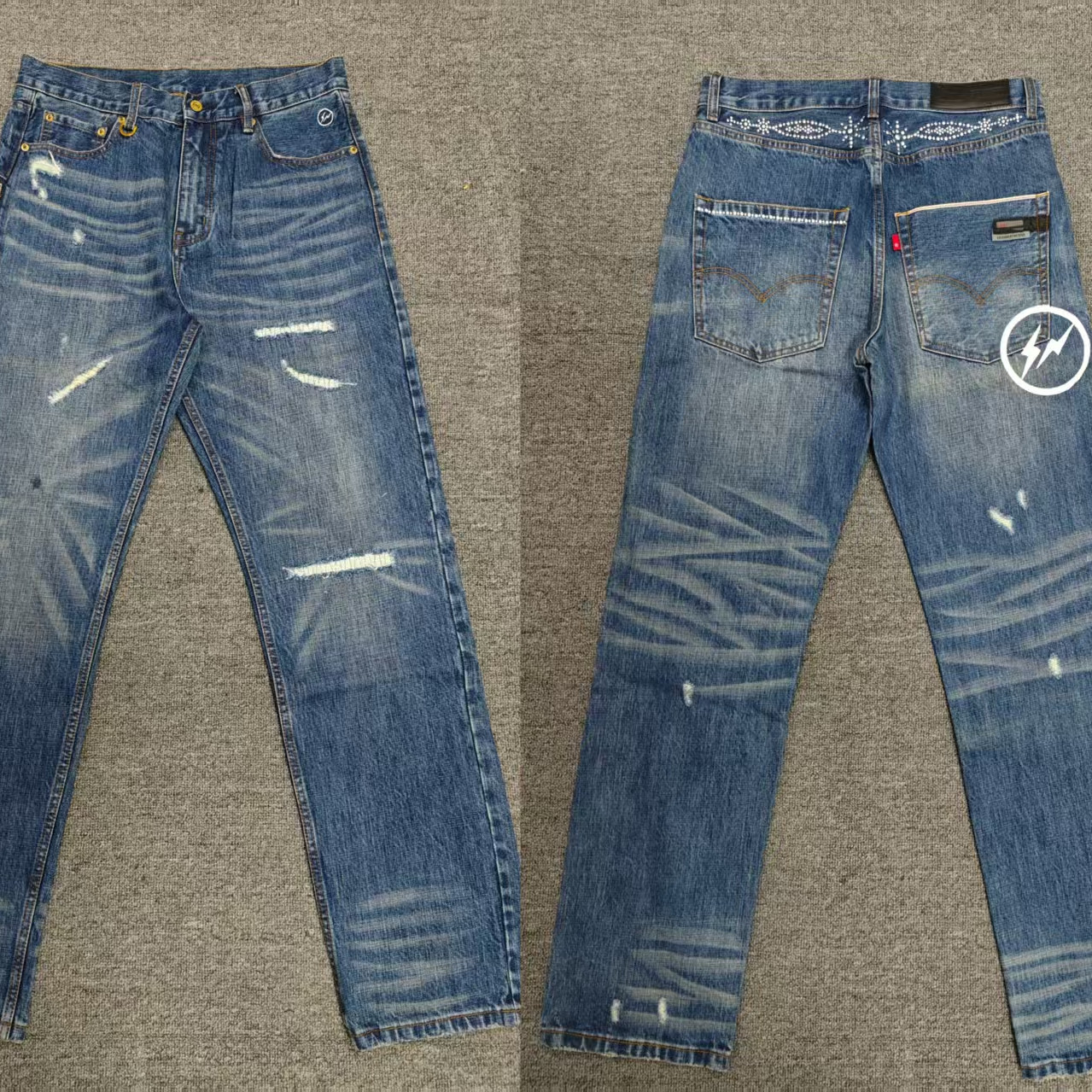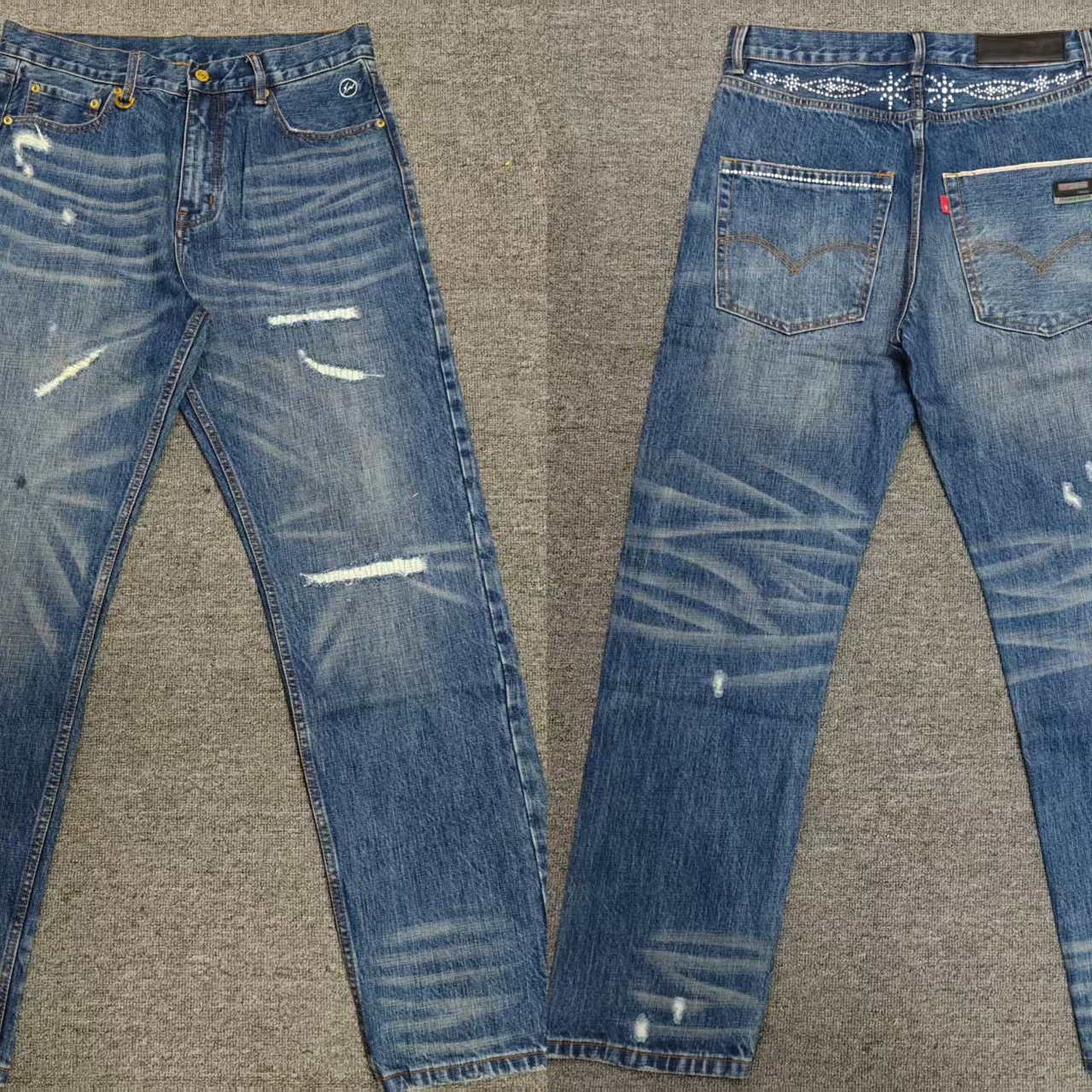 Fenom藤原浩Crush风格C1重磅水洗破坏赤耳单宁直筒宽松牛仔裤