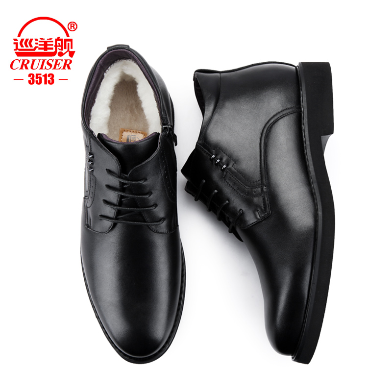 3513巡洋舰棉鞋男冬季保暖短靴真皮羊毛棉皮鞋加绒加厚毛靴冬鞋