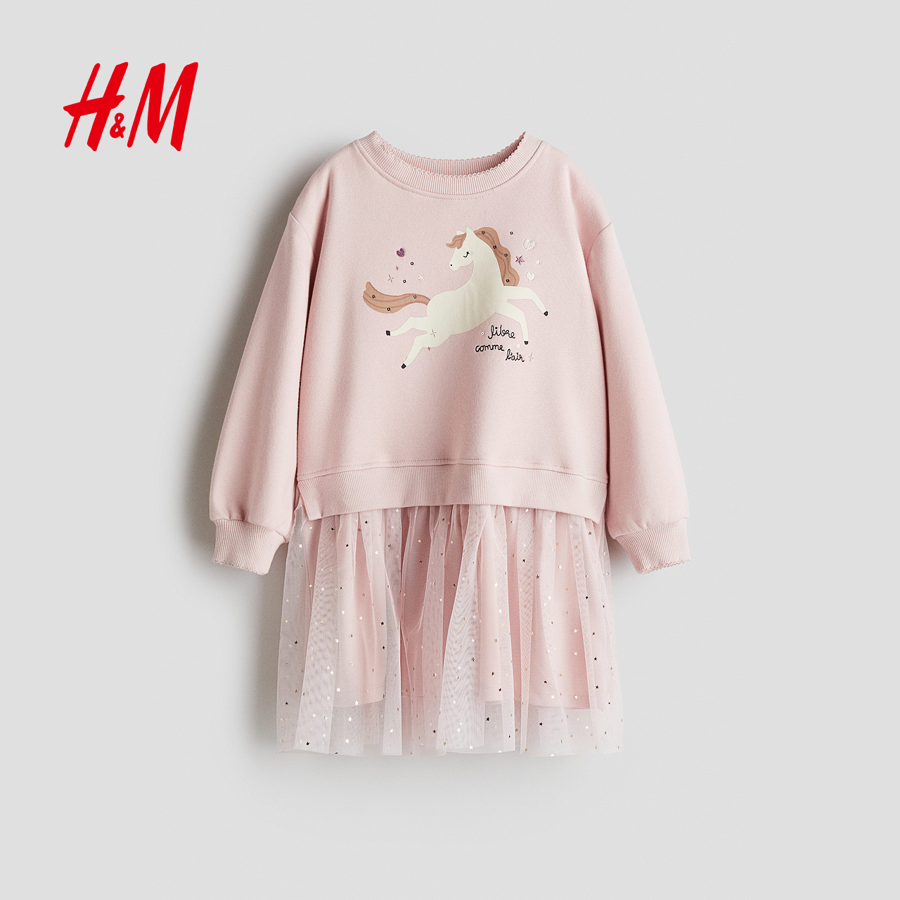 HM童装儿童女童裙子2025秋新款薄纱裙摆卫衣连衣裙公主裙1303542