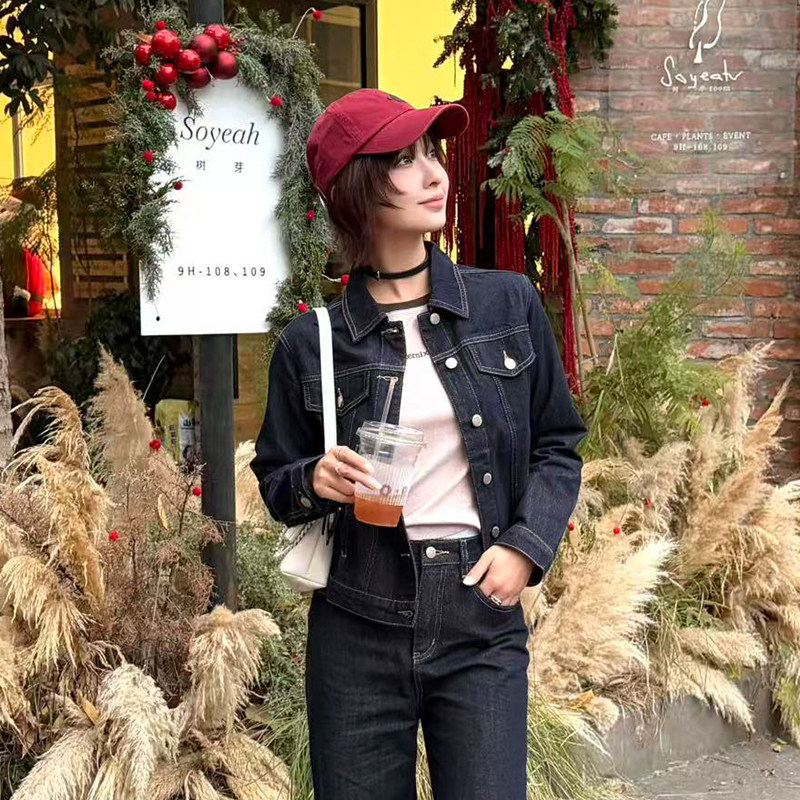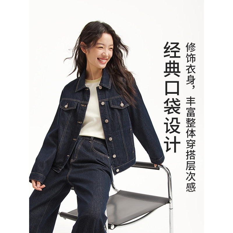 热风女士牛仔夹克外套上衣2026年春季新款经典复古美式牛仔外套