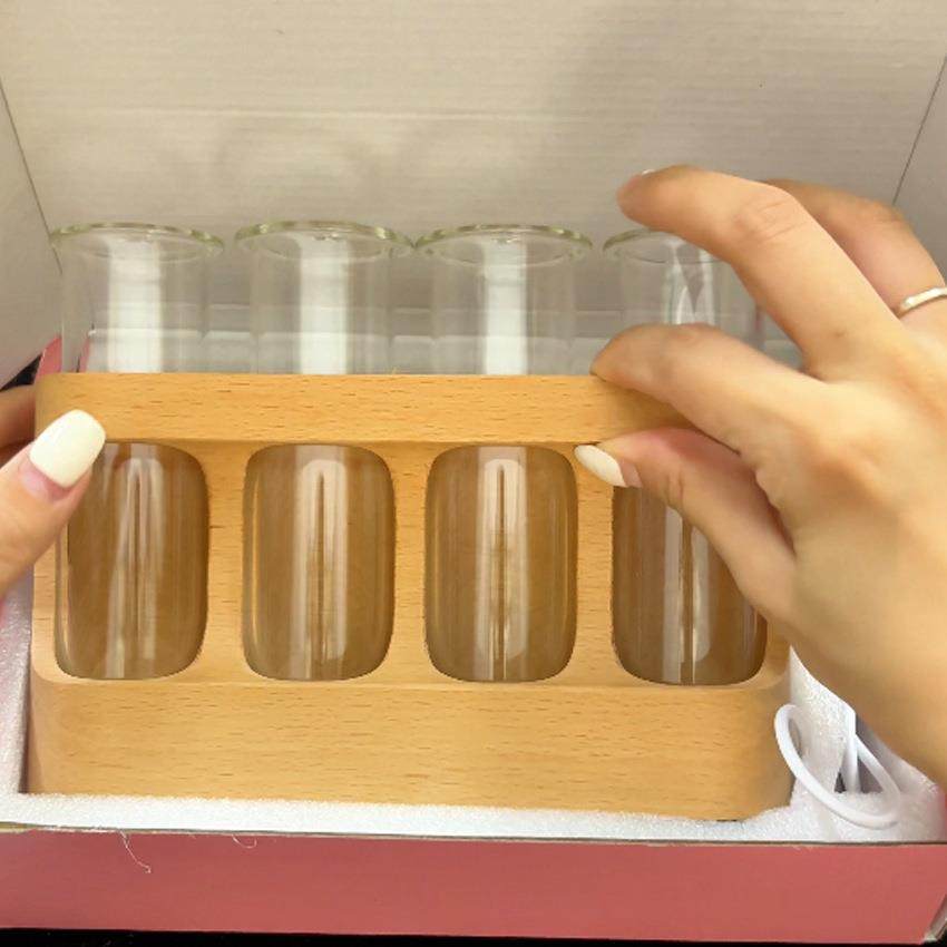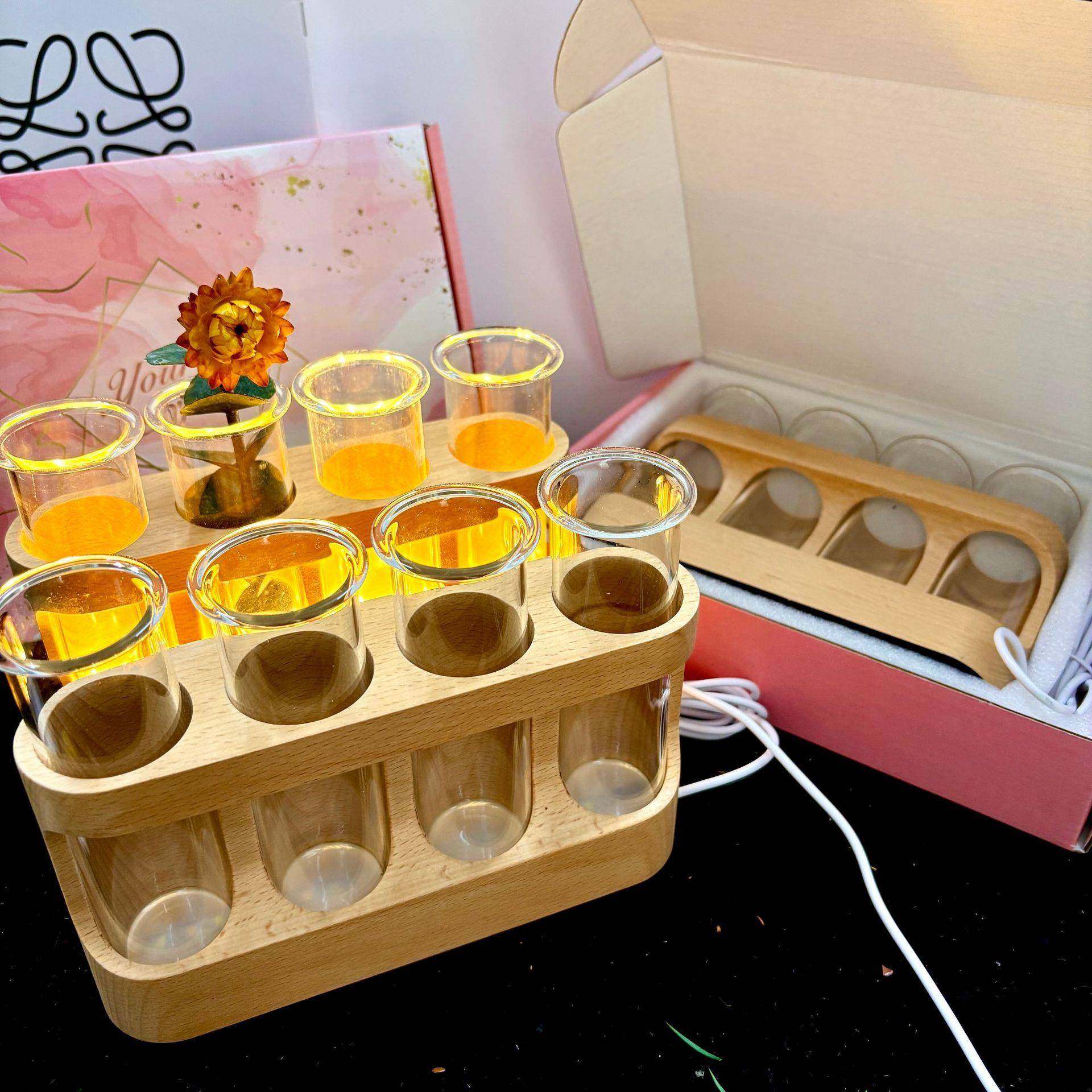 榉木座木质插花摆件木水植物水培器办公室桌面灯饰品实木发光底座