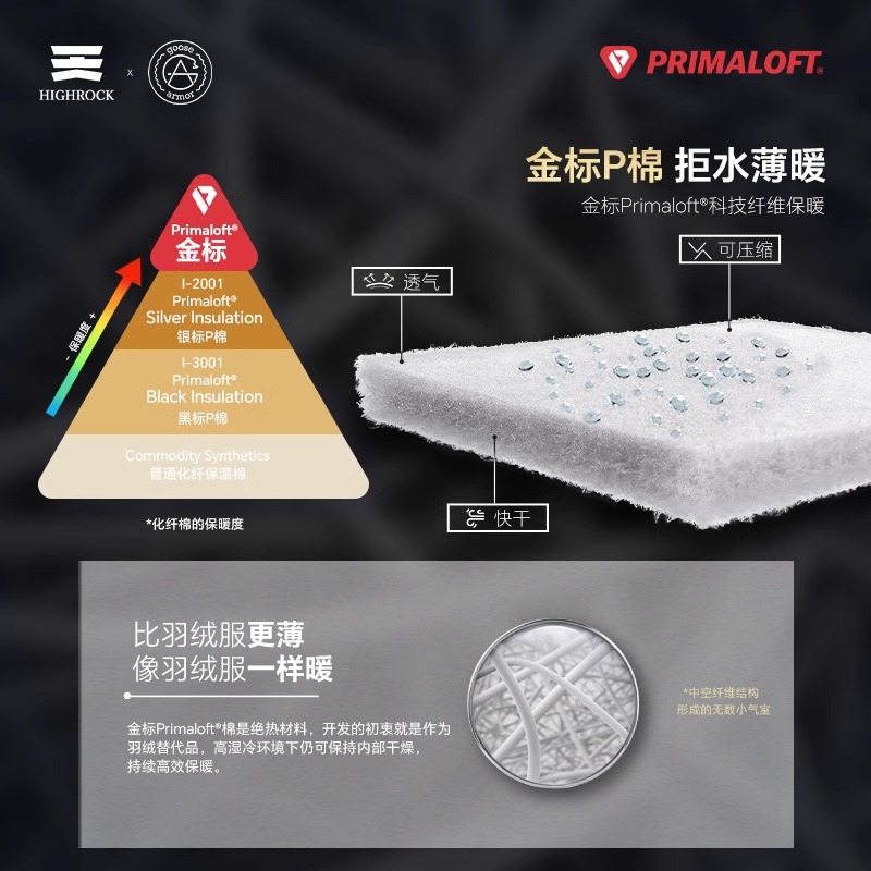 天石鹅铠甲棉服男款金标P棉冲锋衣内胆女秋冬保暖外套户外登山服
