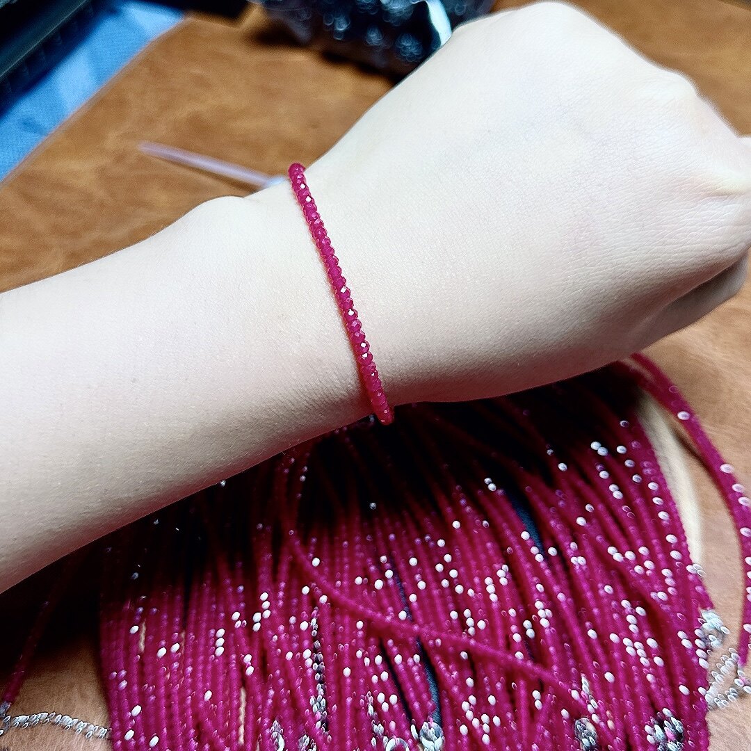 Q113流行卖爆缅甸鸽血红红刚玉优化红宝石刻面手链约3mm女款手串