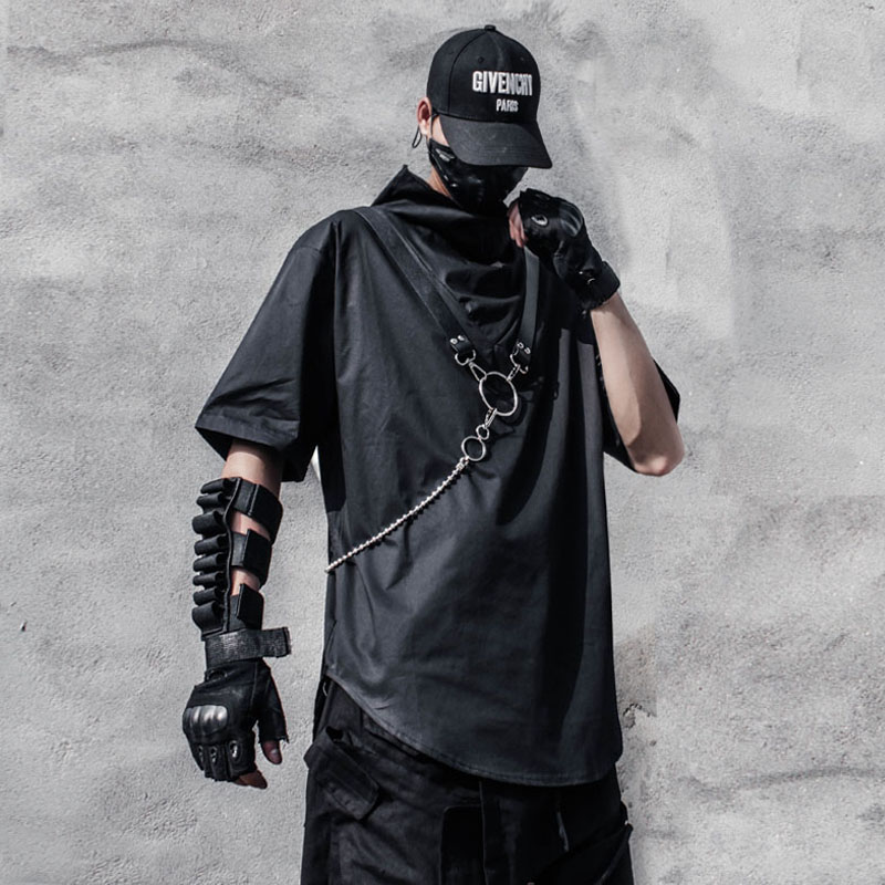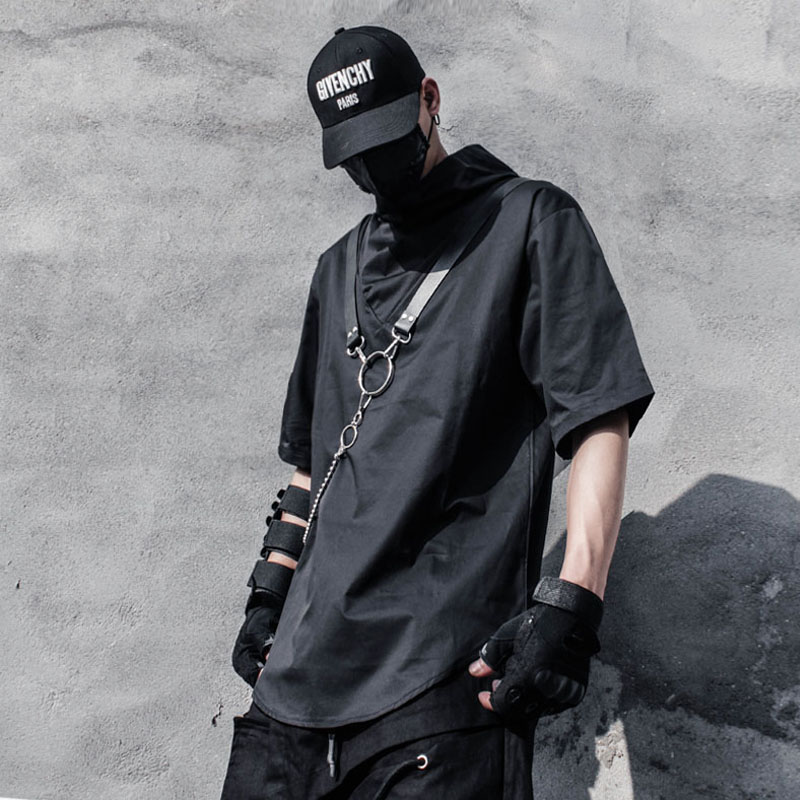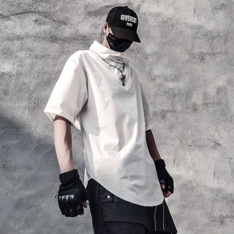 小众原创山本风暗黑个性高领宽松短袖T恤潮牌半袖薄款体恤衫夏款