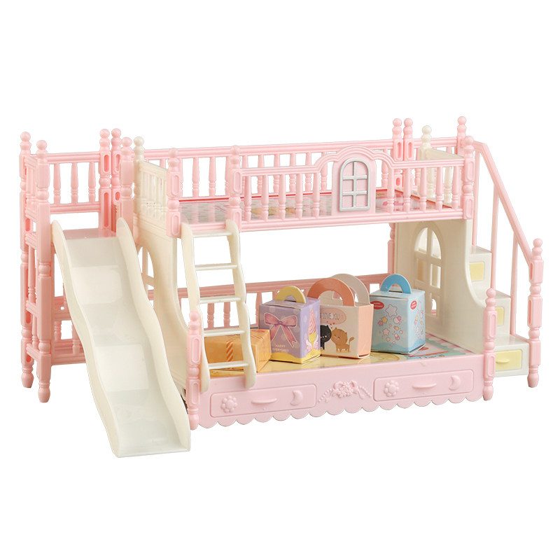 娃娃屋迷你家具卧室双层床带滑梯家具微模型过家家卡通小摆件儿童