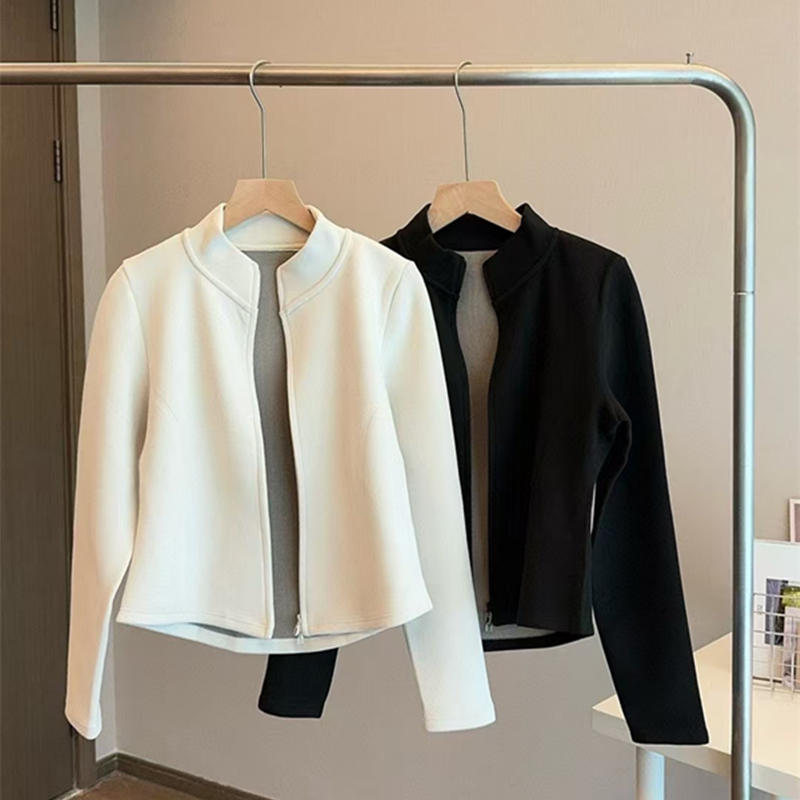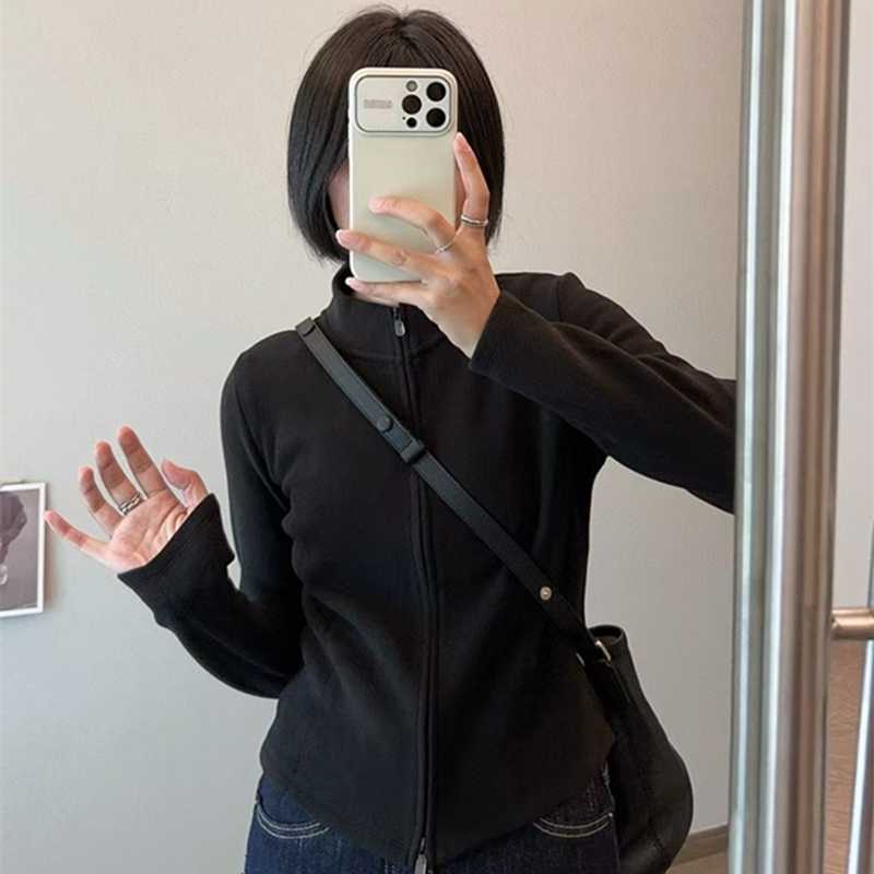 巨显瘦自发热石墨烯拉链卫衣女秋冬加厚磨毛修身显瘦短款外套夹克