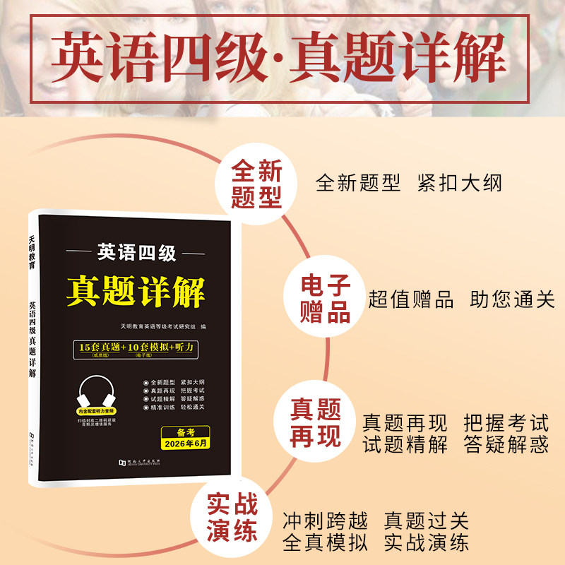 备考2026年6月大学英语四级六级考试历年真题库试卷cet4级词汇书46模拟卷子单词听力复习学习资料26大学生四六级阅读写作6练习题