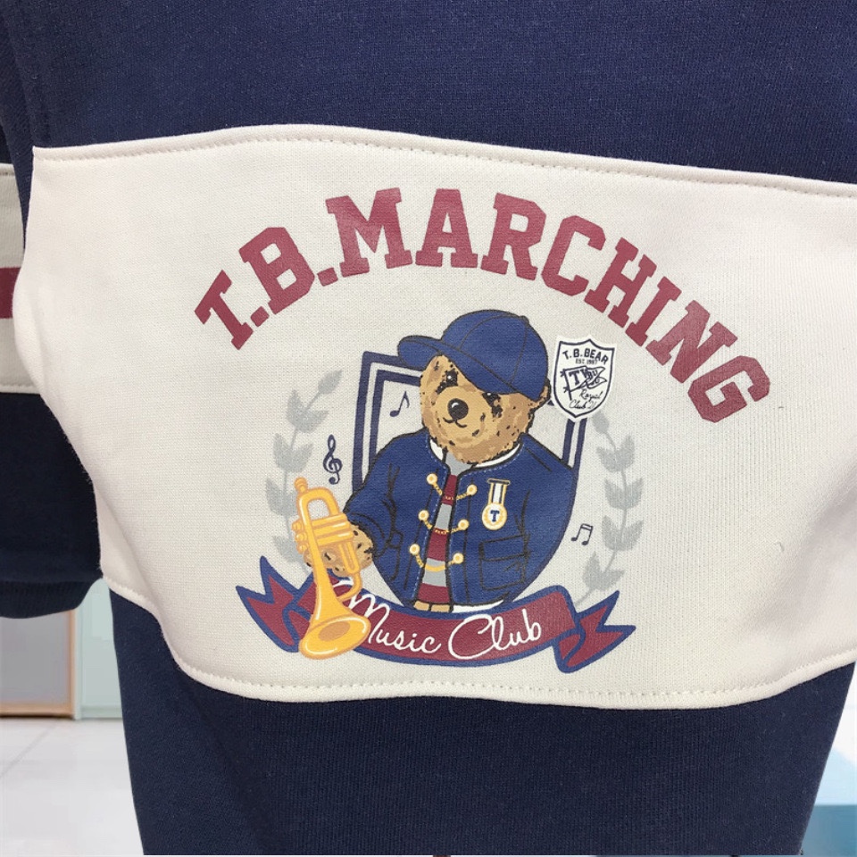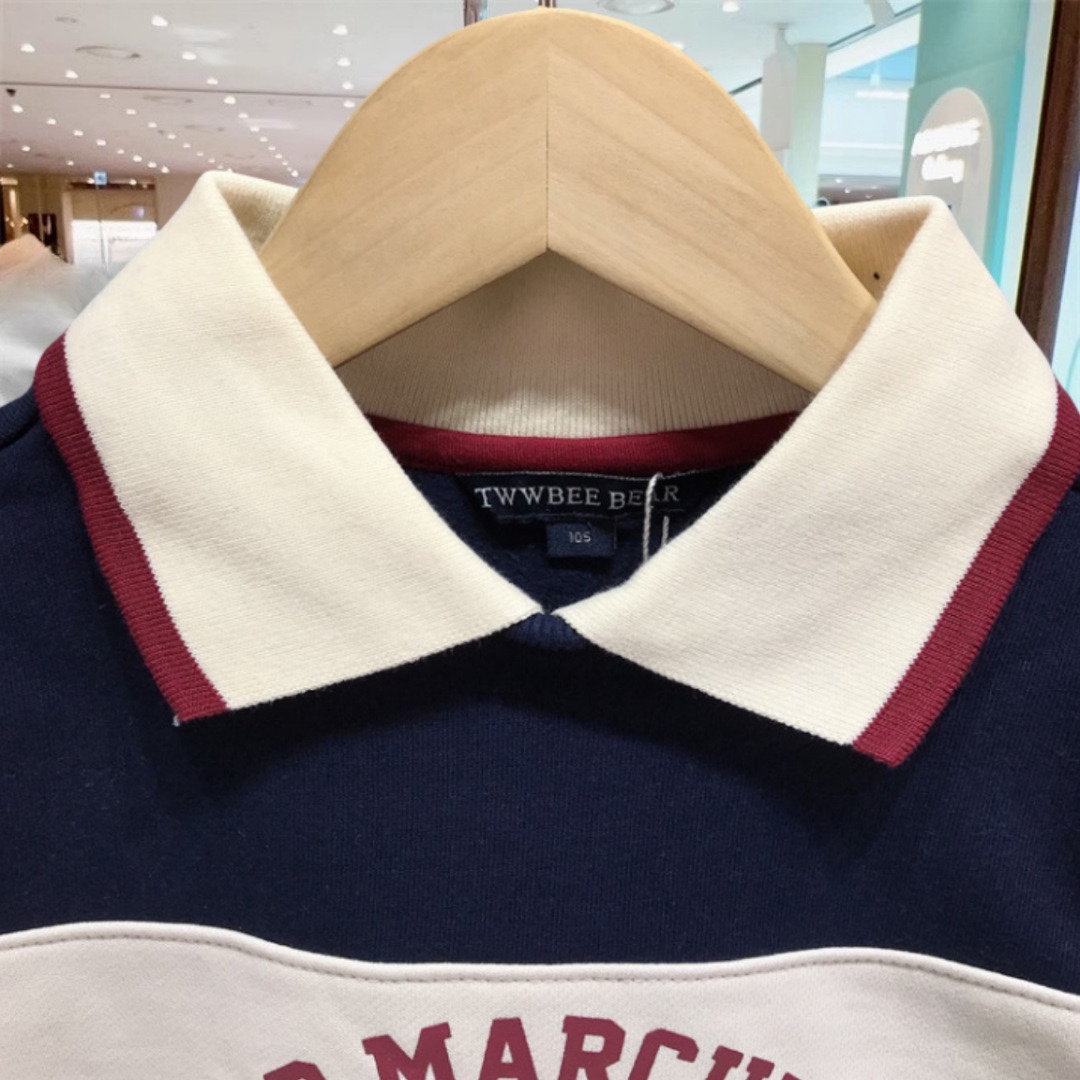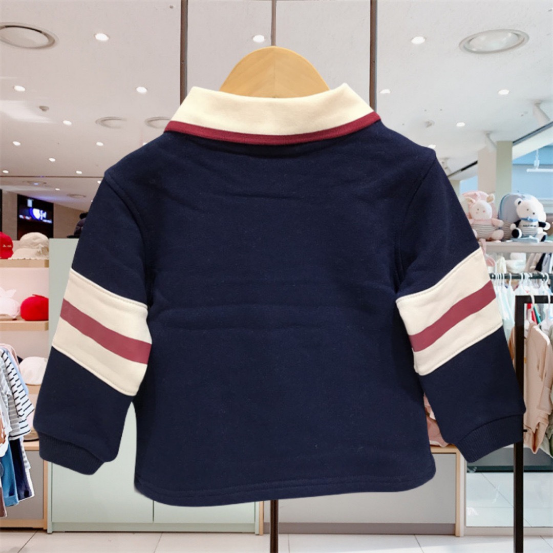 小熊童装24秋冬新款男童拼色条纹加绒翻领卫衣长袖T恤TTMW234T06B