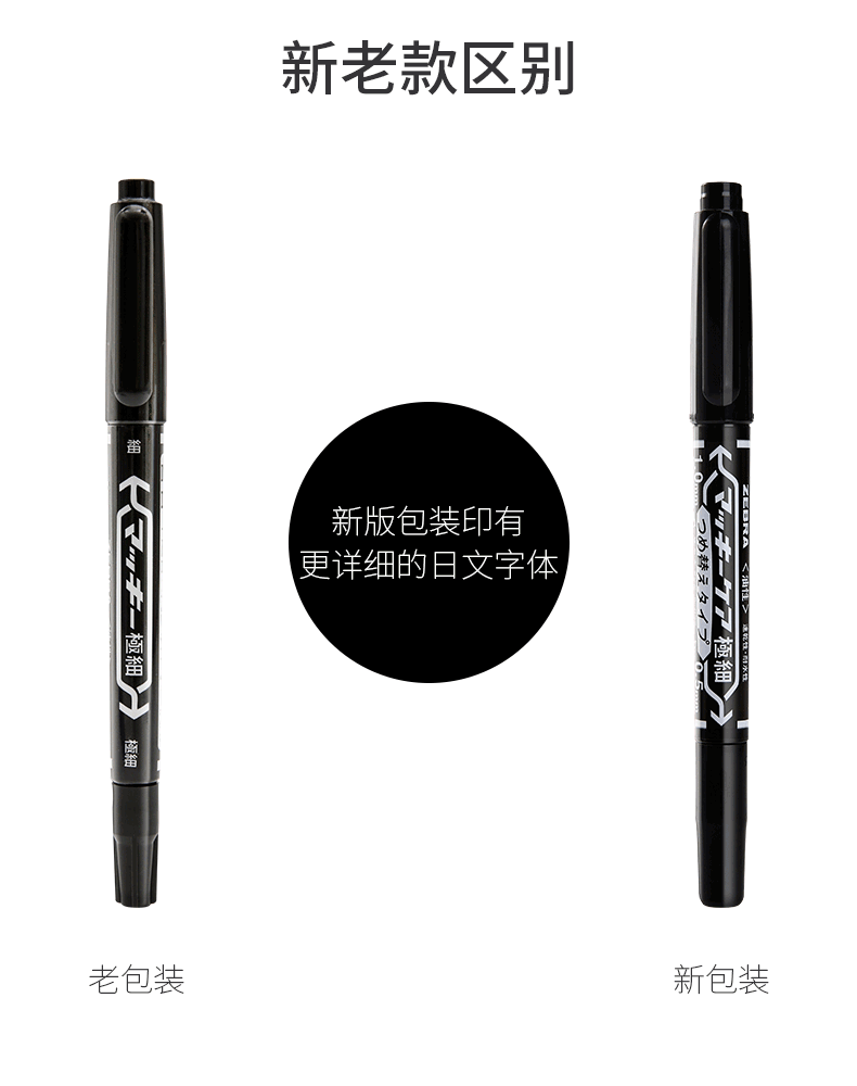 日本ZEBRA斑马小双头记号笔MO-120-MC双头记号笔油性标记速干不掉色光盘笔YYTS5黑色勾线笔美术描边粗细两头
