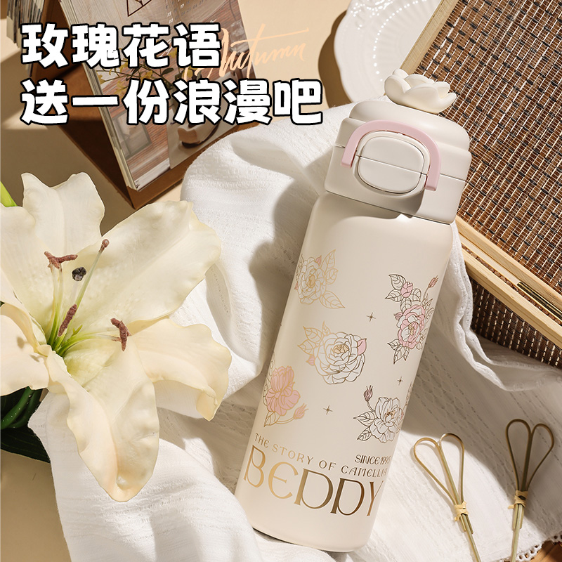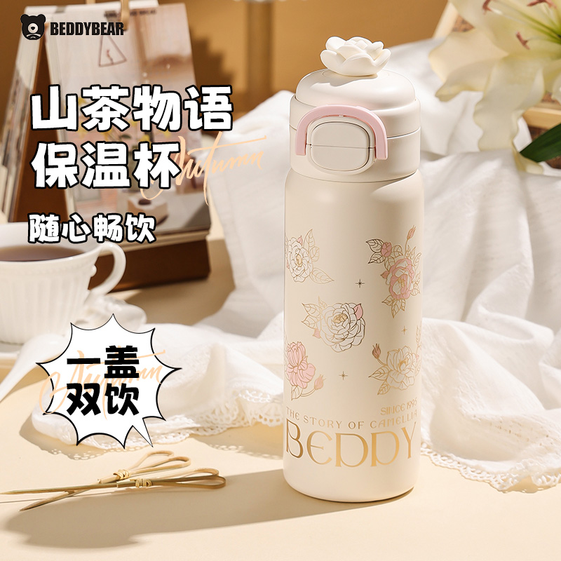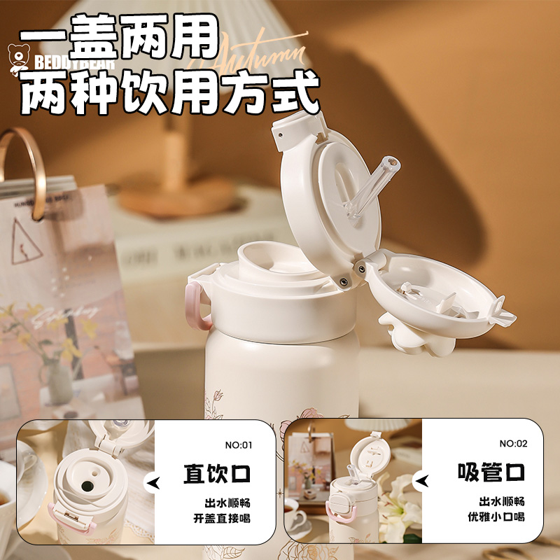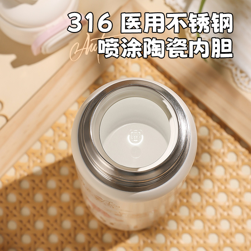 杯具熊保温杯陶瓷覆层内胆盛开双饮高颜值水杯女生随行保冷杯子