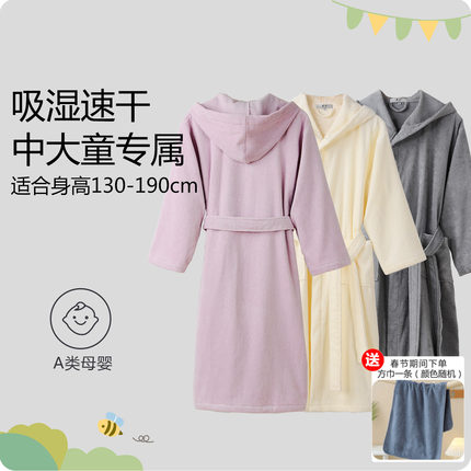 A类纯棉浴袍新款带帽子大童四季