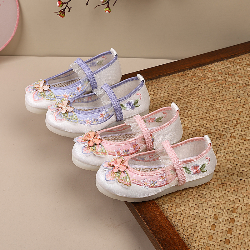 女童汉服鞋子春秋中国风布鞋老北京儿童绣花鞋宝宝手工古装古风鞋