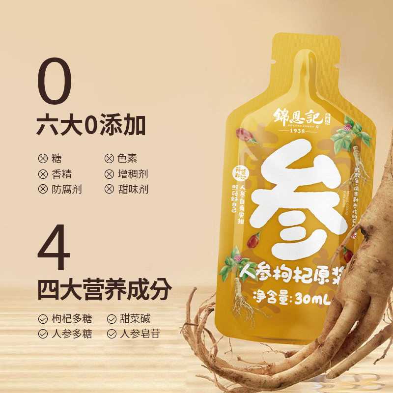 锦恩记辛吉飞人参枸杞原浆东北长白山人参宁夏枸杞子汁官方旗舰店