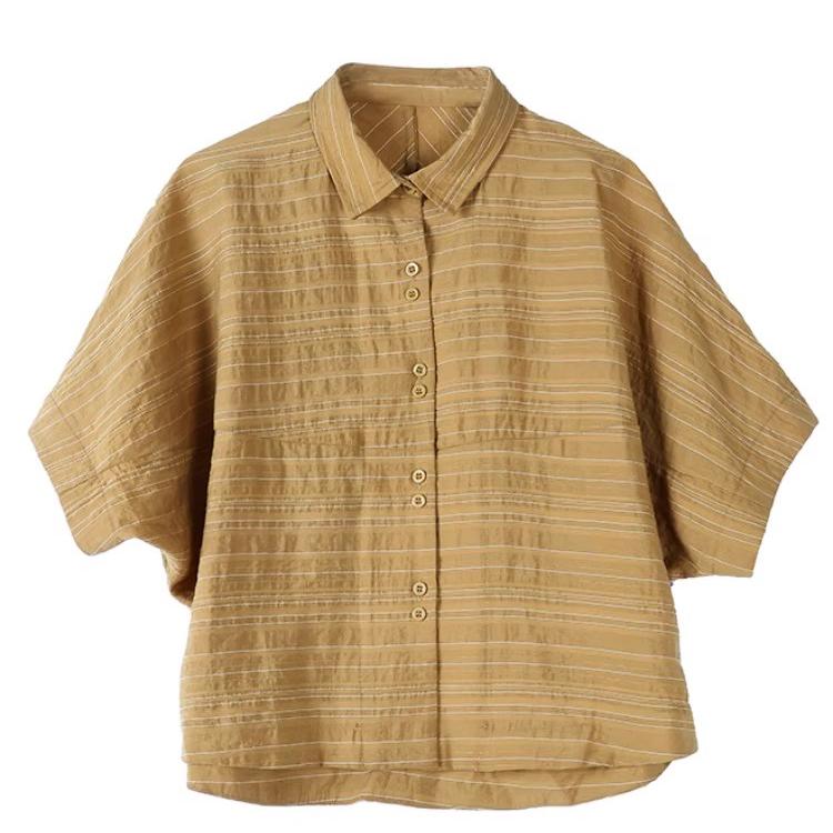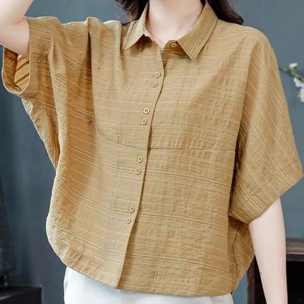 高档休闲百搭短袖衬衫女韩版宽松蝙蝠袖洋气棉麻上衣2025夏季新款