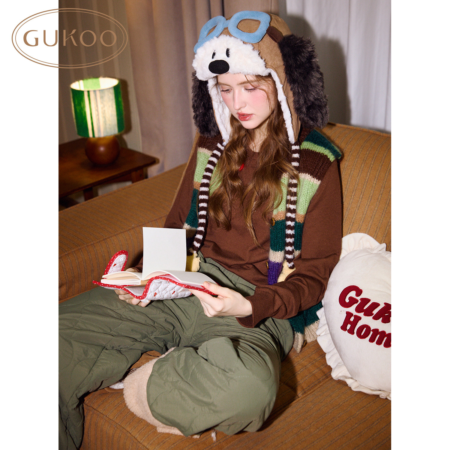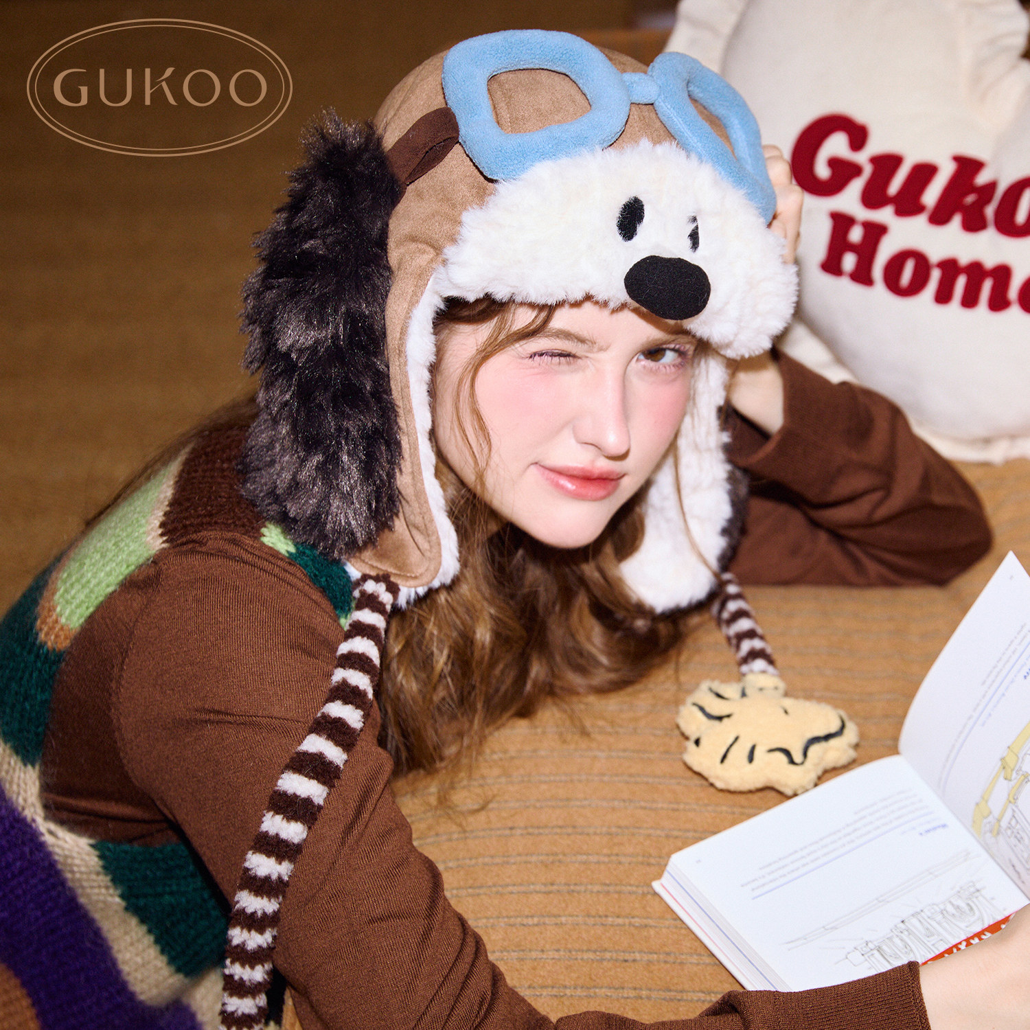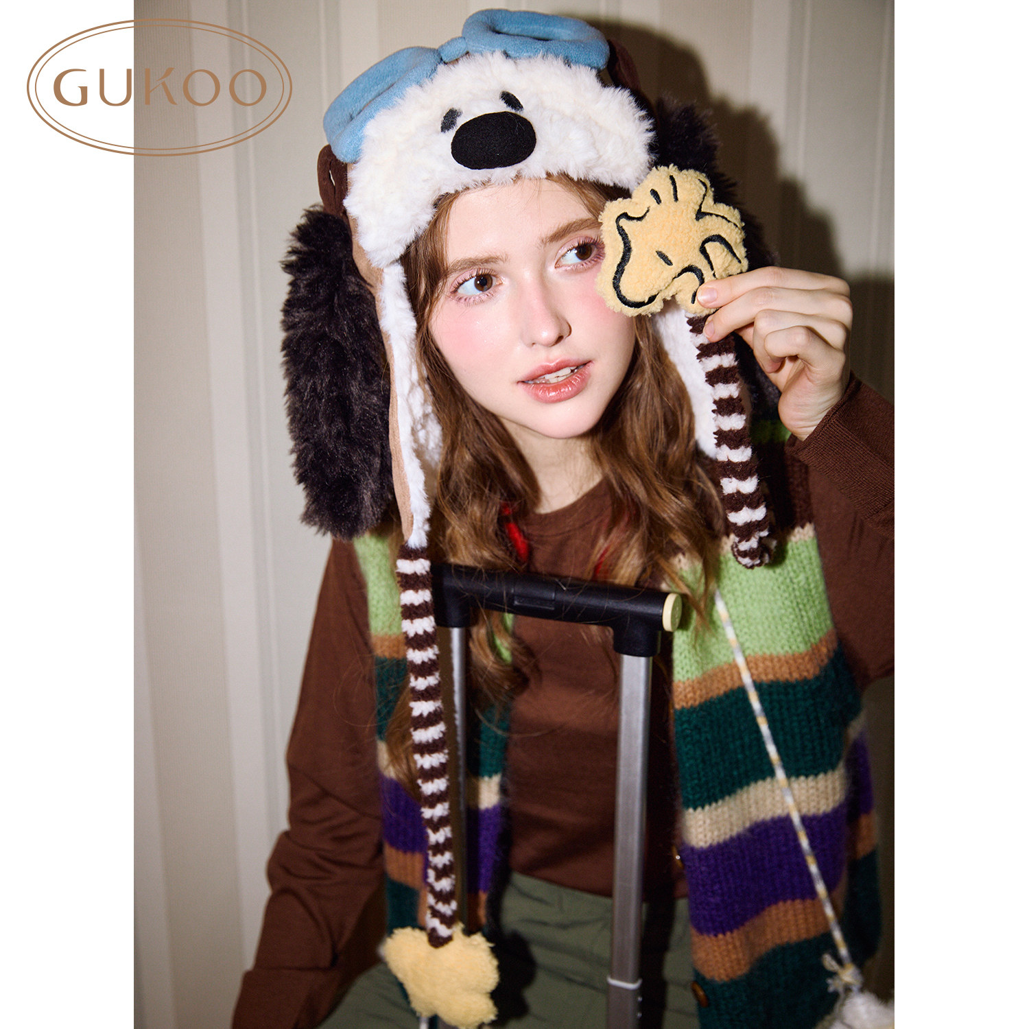 Gukoo/果壳帽子冬季保暖飞行帽史努比联名新款加绒护耳女士棉帽子