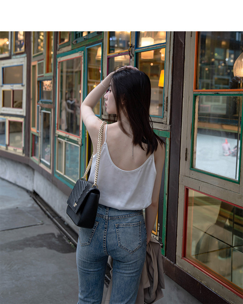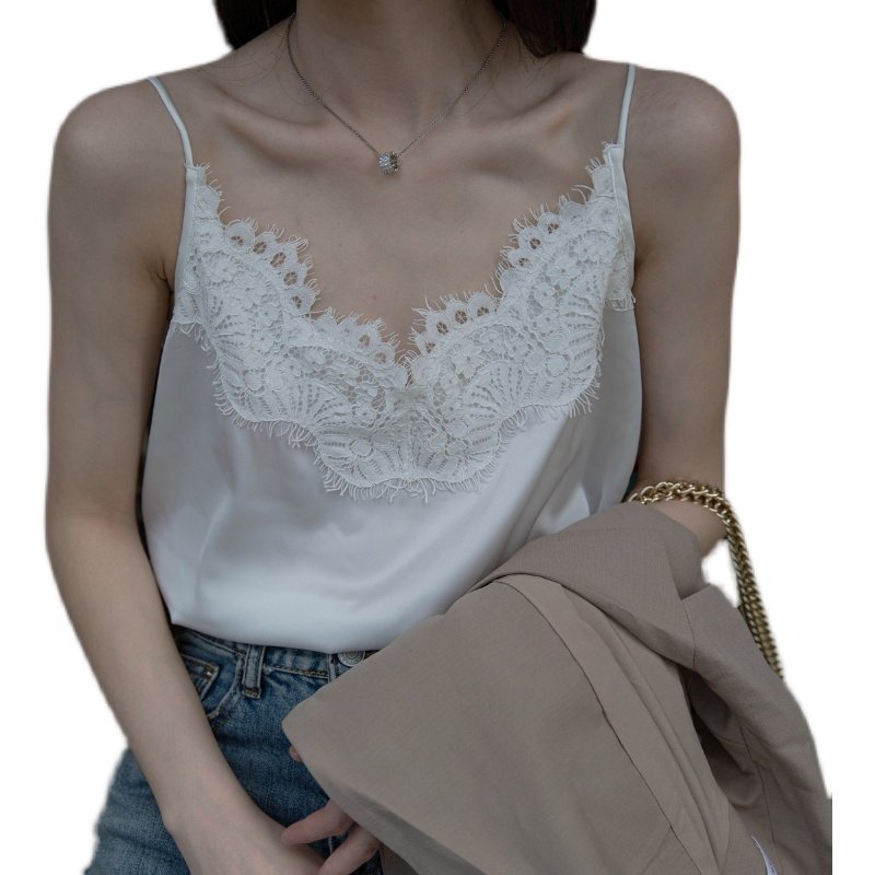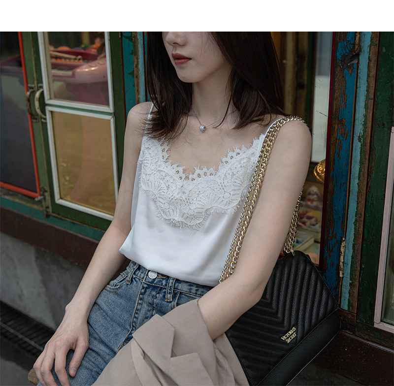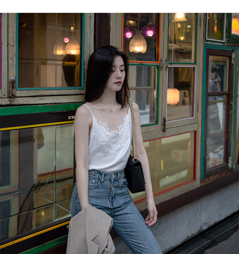 ins宽松高端缎面蕾丝吊带外穿绸缎真丝无袖背心西装内搭打底小衫