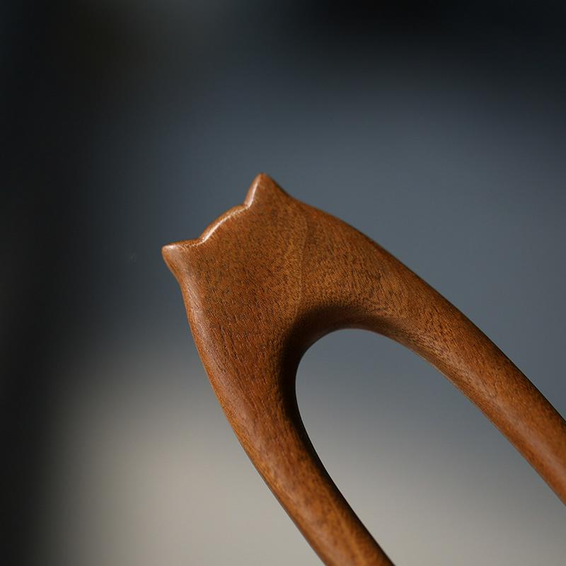 【弧猫】U型发簪发钗盘发簪子猫咪金丝檀木实木发饰可爱日常通勤