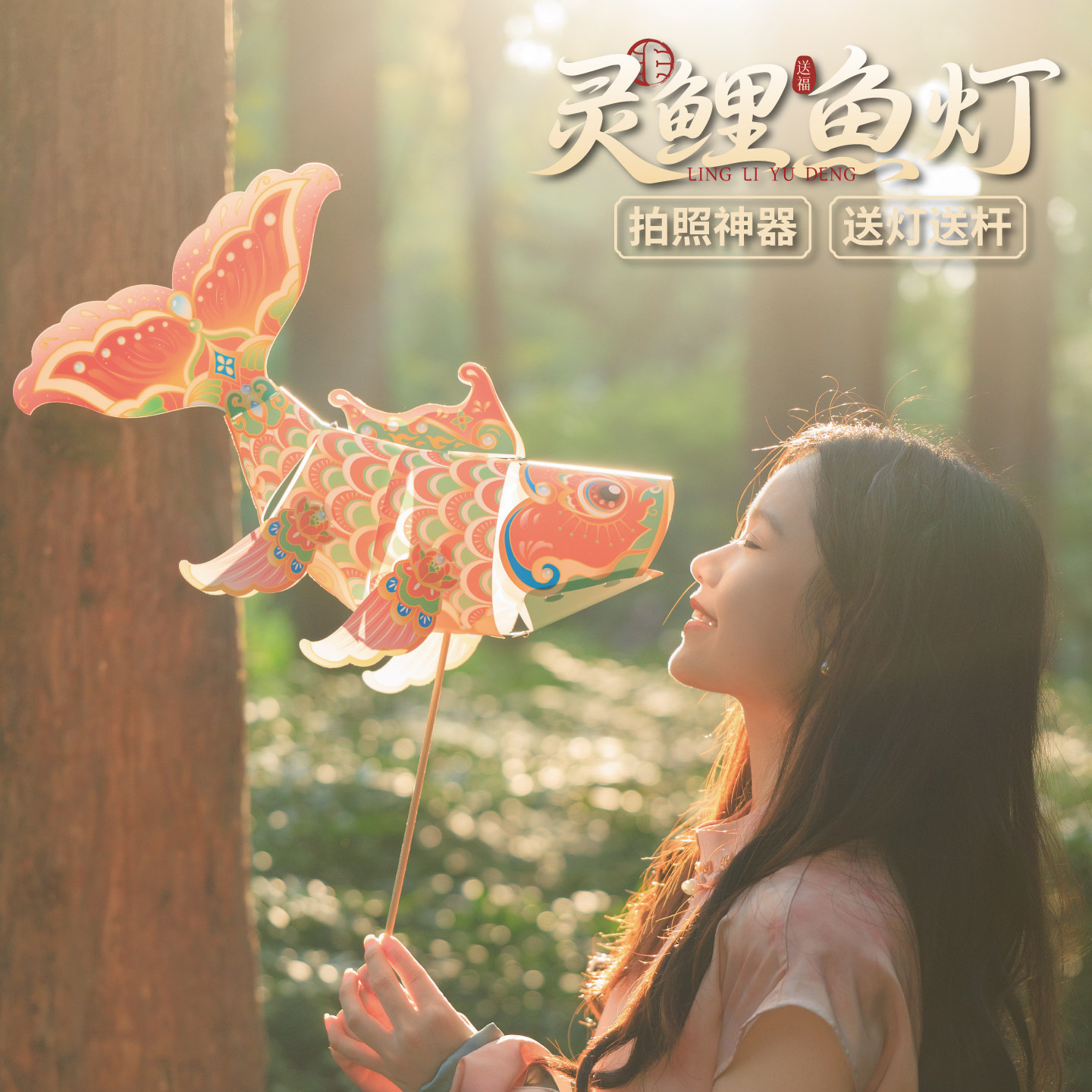 新年手工灯笼diy手持发光灵鲤鱼灯材料包儿童幼儿园花灯拍照道具