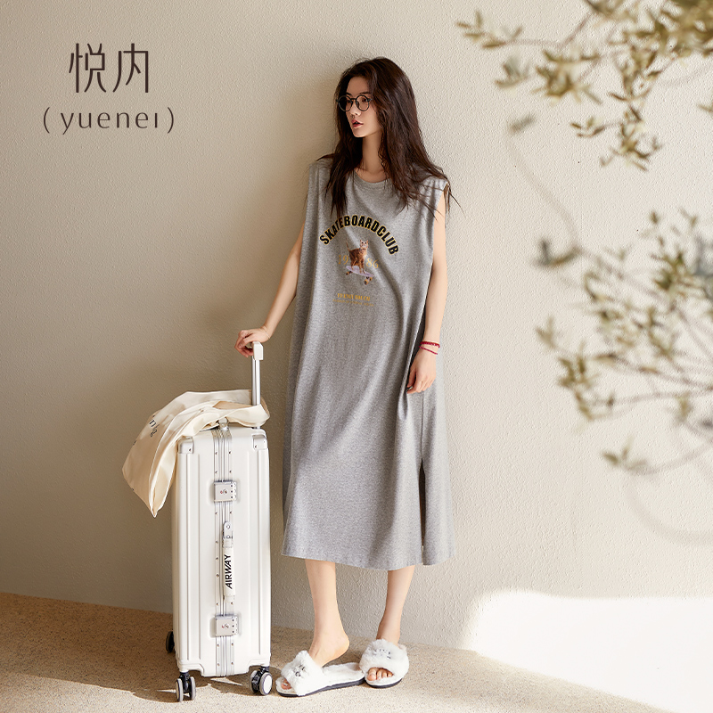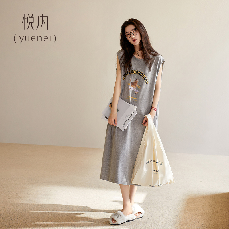 悦内带胸垫睡裙女款睡衣夏季无袖背心纯棉薄款宽松大码长裙可外穿